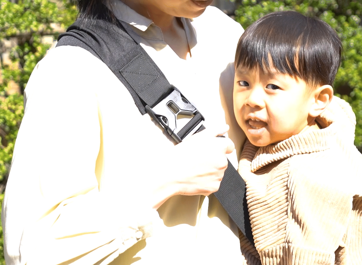 A:お子さんが嫌がった時は、無理に使用を続けるのではなく、心地よい体験を増やしながら、使用を続けてみてください。不安な方は、ベルトの調節の仕方や、抱っこの位置を人形等で確認してから、お子様を初めて抱っこして頂くことをお勧め致します。