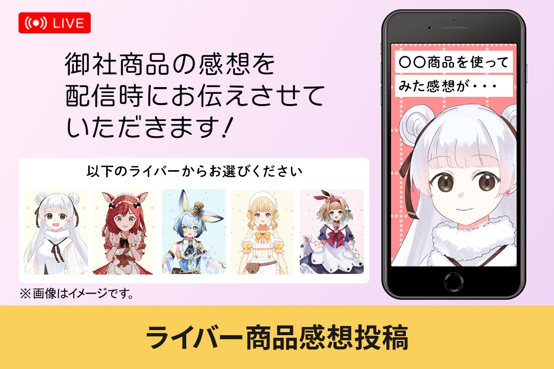 ライバー事務所ASTERのライバーが御社の商品を使用し、その商品の感想をライブ配信時にお伝えします。