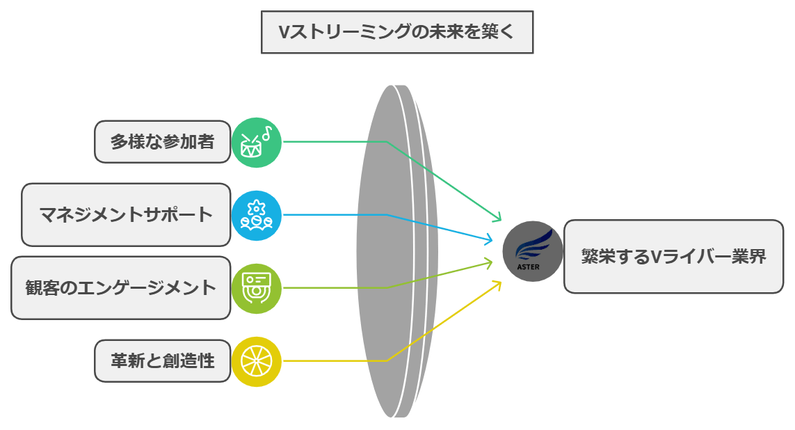 私たちの目指すのは、Vライバーが自己表現を通じて可能性を広げ、夢を実現できるプラットフォームを作ることです。