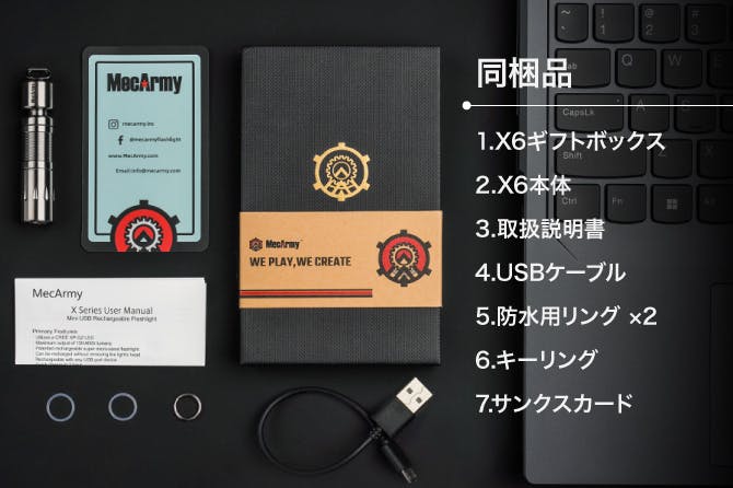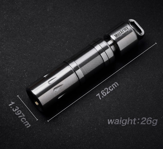 MecArmy X6は長さが約44.5mm、重さがわずか26グラムです。非常に軽量でコンパクトな設計のため、キーチェーンに取り付けて手軽に持ち運べます。