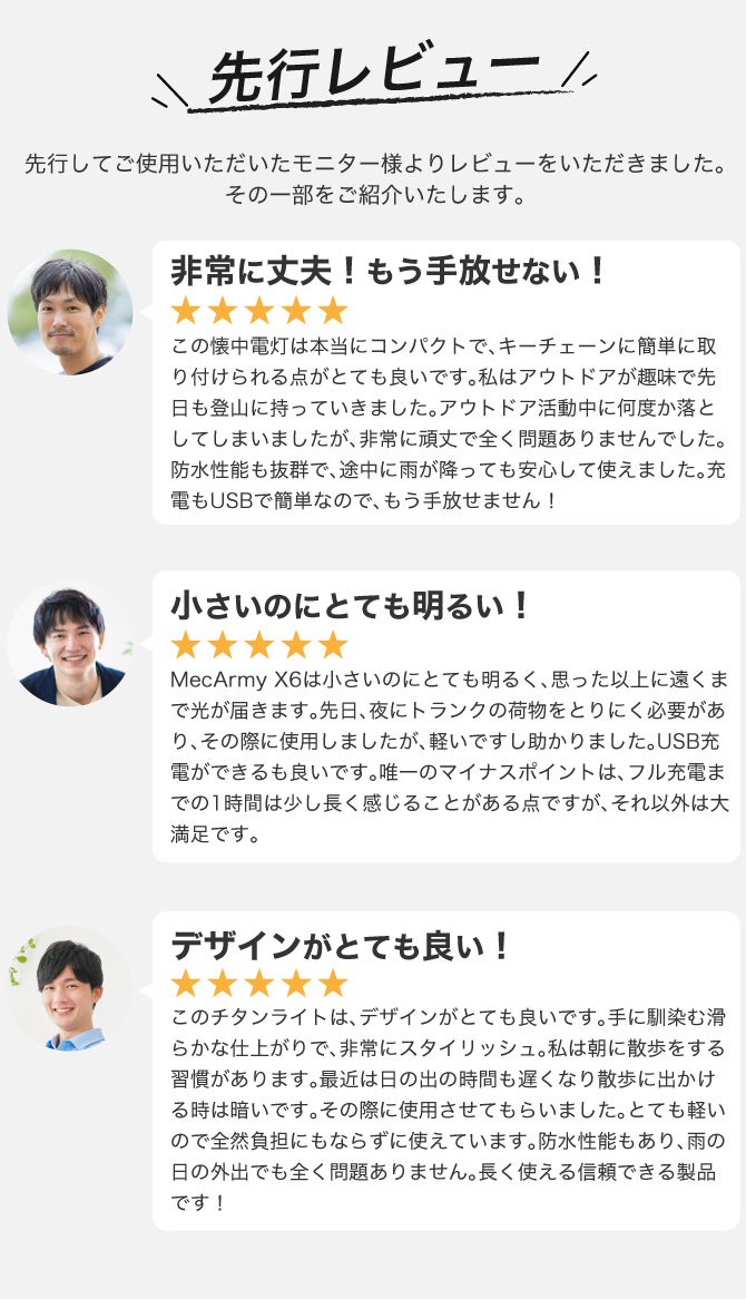 今回、私たちがご紹介するのは、MecArmyの高性能懐中電灯シリーズです。MecArmyは、耐久性・機能性に優れた懐中電灯メーカーとして知られており、世界中で多くのアウトドア愛好家やプロフェッショナルに愛用されています。特に、軽量で耐久性が高いTC4チタン合金を使用した懐中電灯は、アウトドア、DIY、日常生活での使用に最適です。