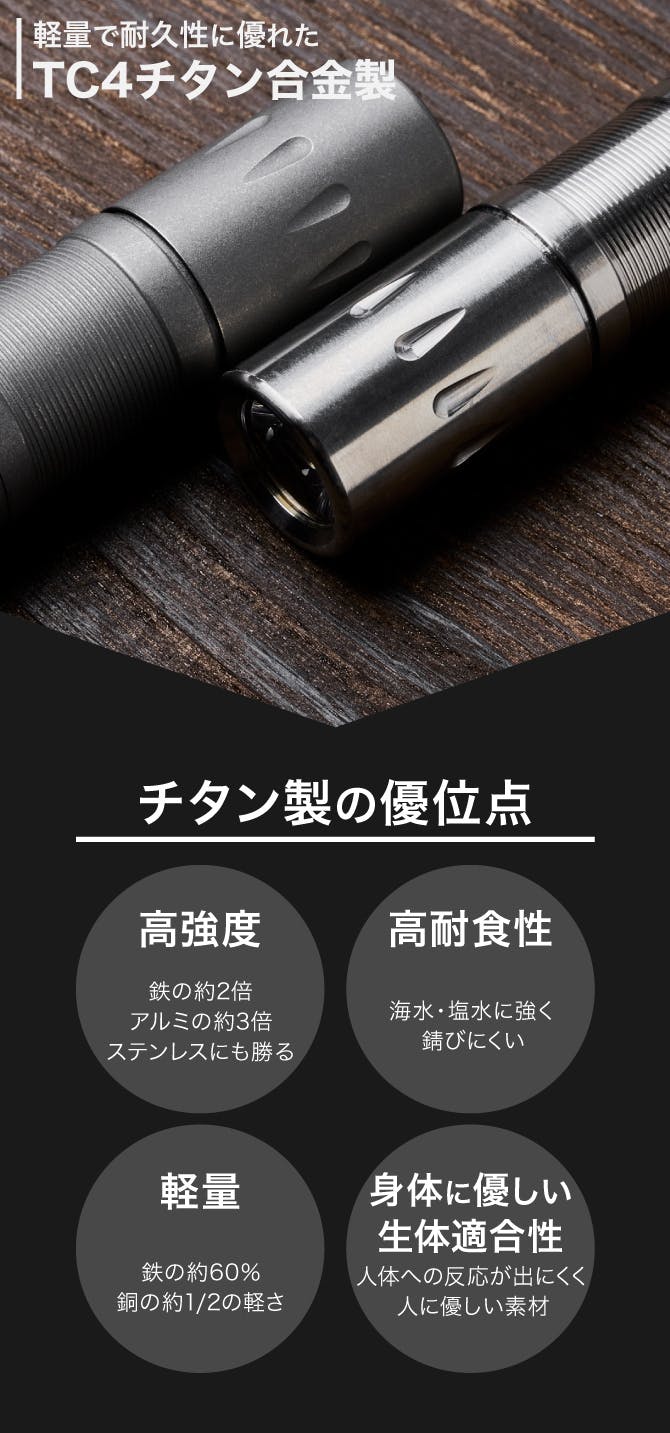 X6は軽量で耐久性のあるTC4チタン合金を使用した超コンパクト懐中電灯です。