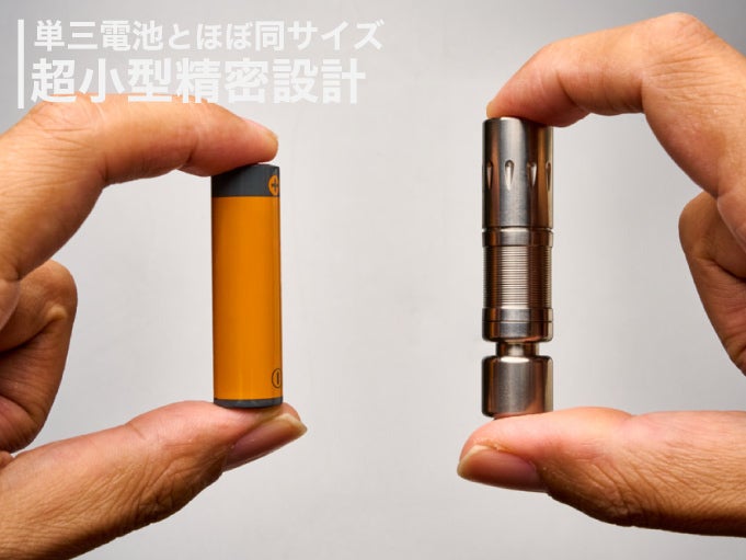 X6は超小型で精密な設計がされています。その小ささは単三電池とほぼ同サイズ。この小さなボディにさまざまな工夫が施され、普段使いから災害時の防災グッズとしても大変頼りになる懐中電灯となっています。