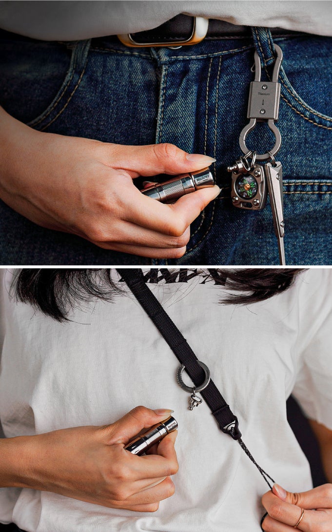 MecArmy X6は長さが約44.5mm、重さがわずか26グラムです。非常に軽量でコンパクトな設計のため、キーチェーンに取り付けて手軽に持ち運べます。