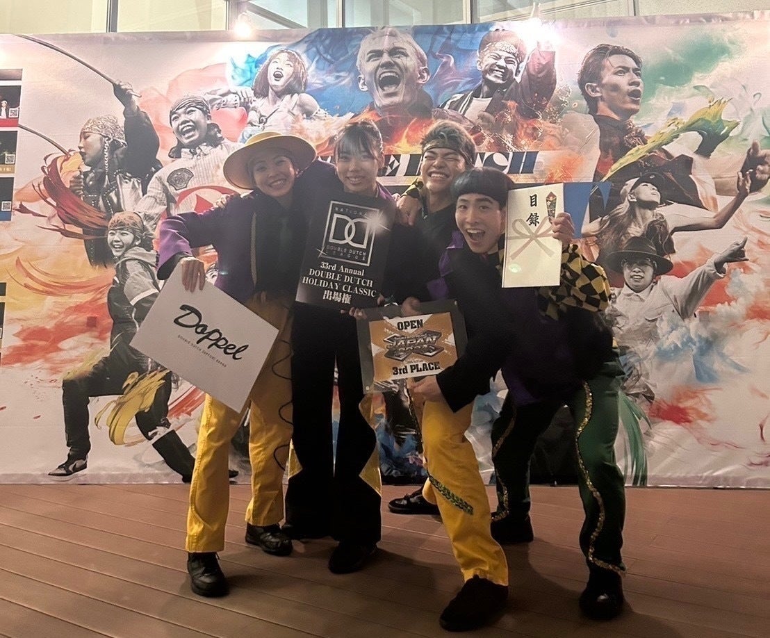 私たちは、メンバー全員が未経験で大学からダブルダッチを始めた4人組チームです。私たちは、10月に開催された「Double Dutch Delight Japan 2024」へ敗者復活戦から出場し、敗者復活戦では満点をいただき本戦へ進出、そして3位入賞を果たし、12月7日にニューヨーク・Apollo Theaterで開催される「National Double Dutch League Holiday Classic (NDDL)」という世界大会への切符を手にしました。
