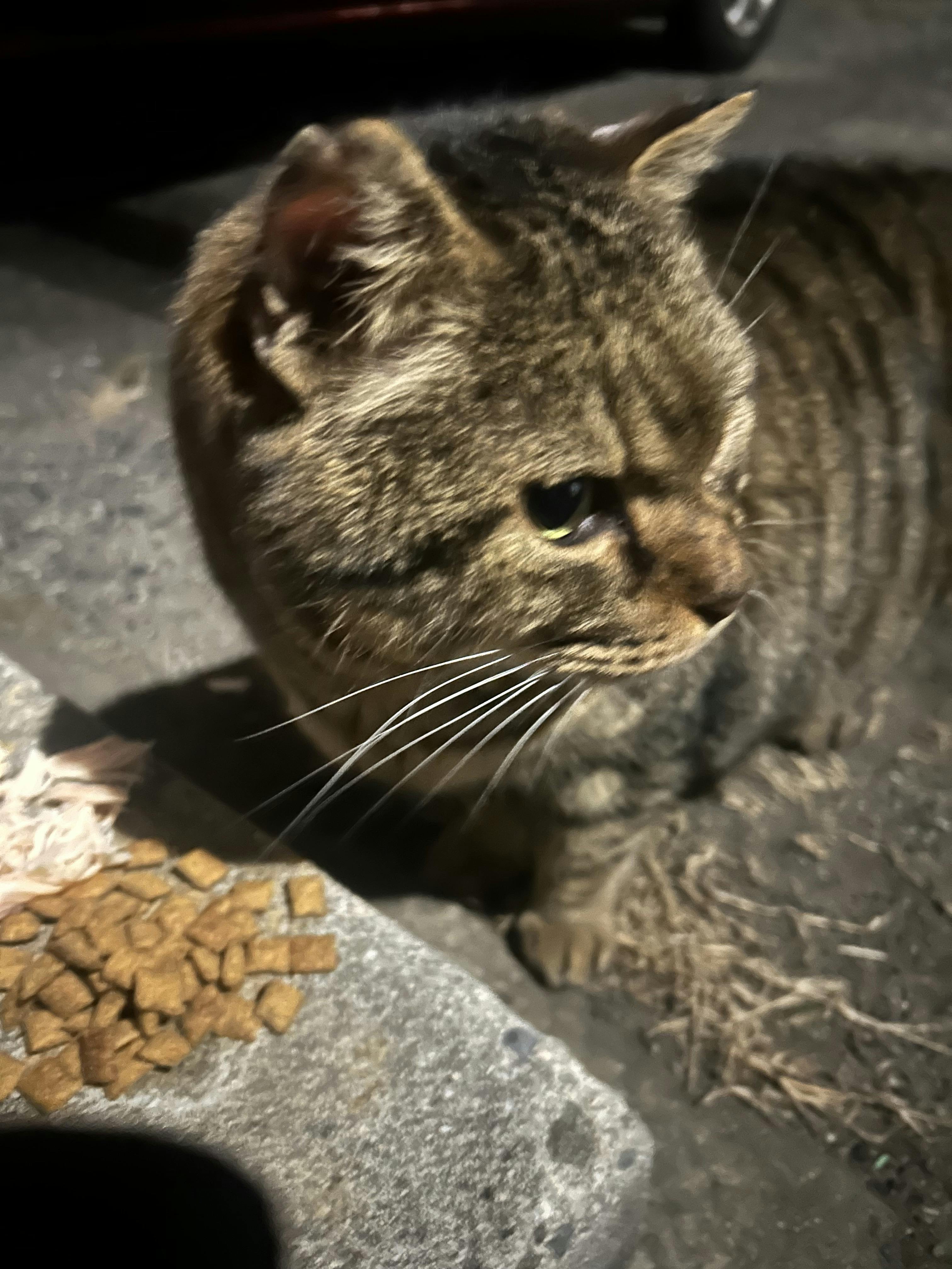 いつも,この場所は白猫サブローがいる。ニャーゴが食べようとした時に現れ、ニャーゴは逃げました。やはり気弱くなってます、
