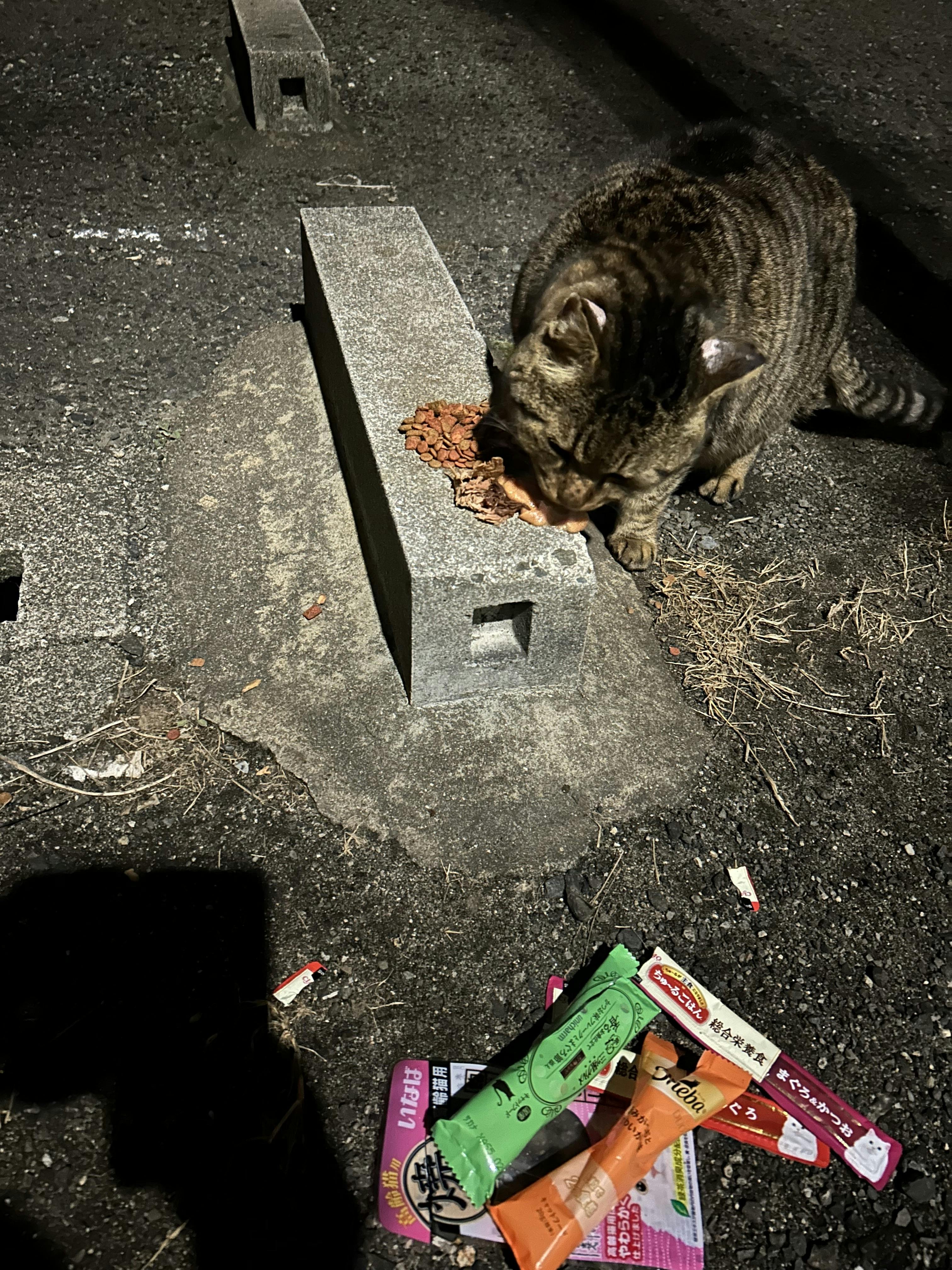 ラストニャンはデカ太郎でした。11時に食べて帰り,器取りに来るam3:00頃に,ずーと待ってたよ〜ぽく岩のように私が来る方向を向いて座ってます。