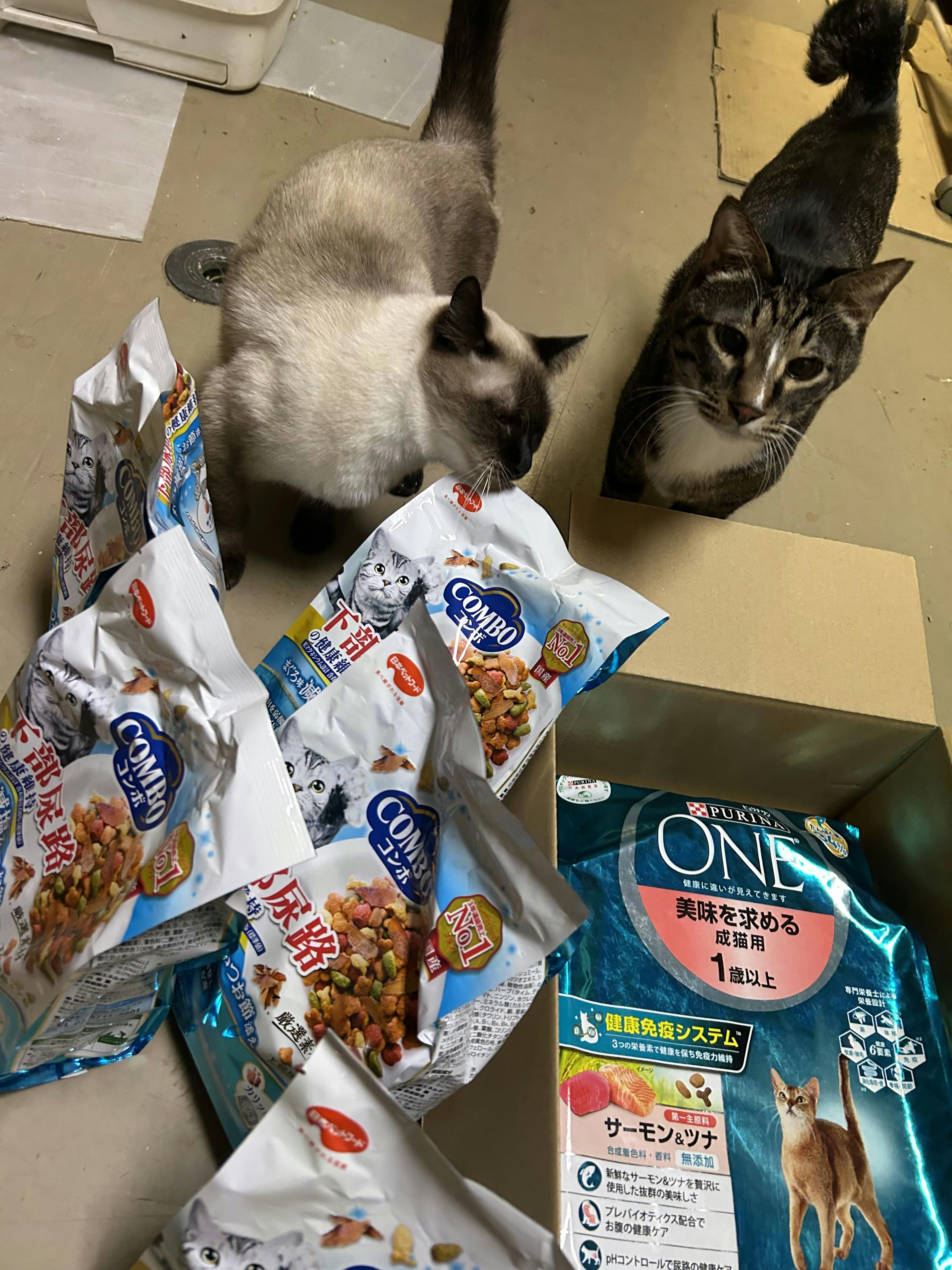 なおみさん 絶対に欠かせらないフードを送ってくれて嬉しいです。皆様のおかげで,コンボもピュリナも皆んなにいっぱい食べさせられます。支えてくださりありがとうございます。