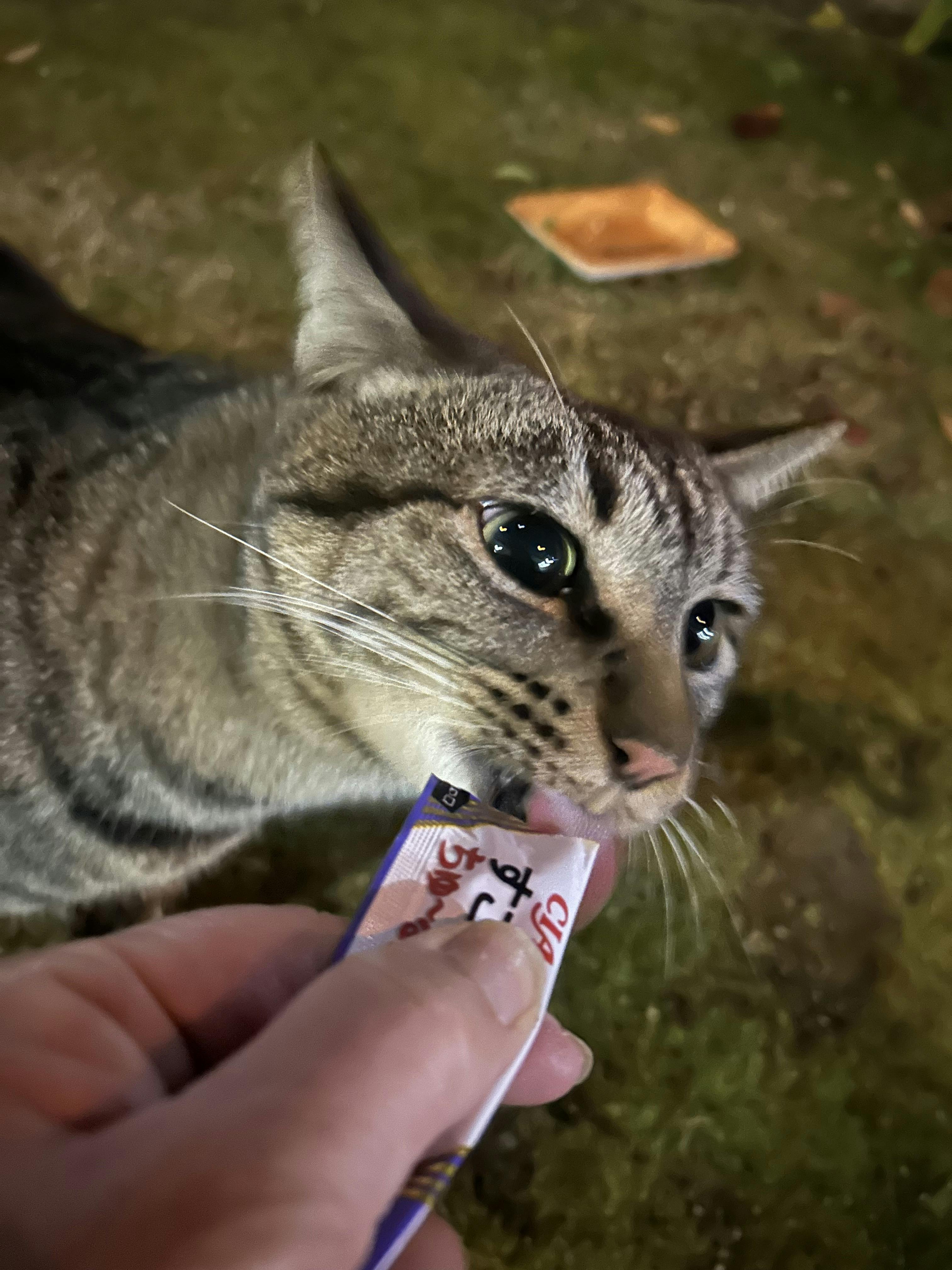 紀伊君に、、3日会ってないのです。昨日も公園で待って、辺りを自転車で走ってたりしましたが 11時半から12時半,他にエサを与えて戻って来てもいなかった。いつもの場所に置いたカリカリとカツオも,そのままだった、