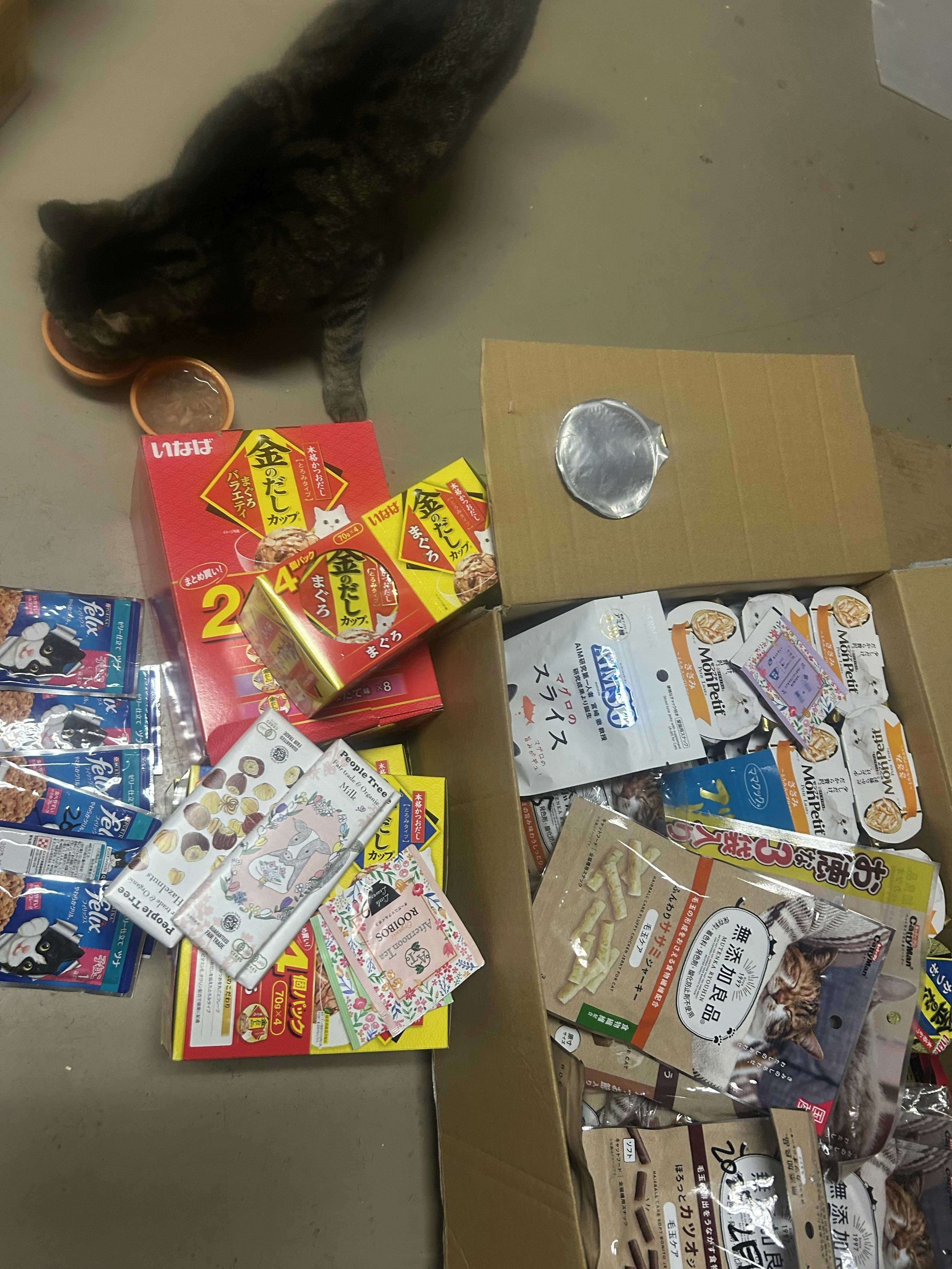 いっぱいのフードをありがとうございます。寒さは厳しい。けど、心は暖かくなりました。優しさに触れる幸せを感じてます。猫達に愛を届けます…ありがとう