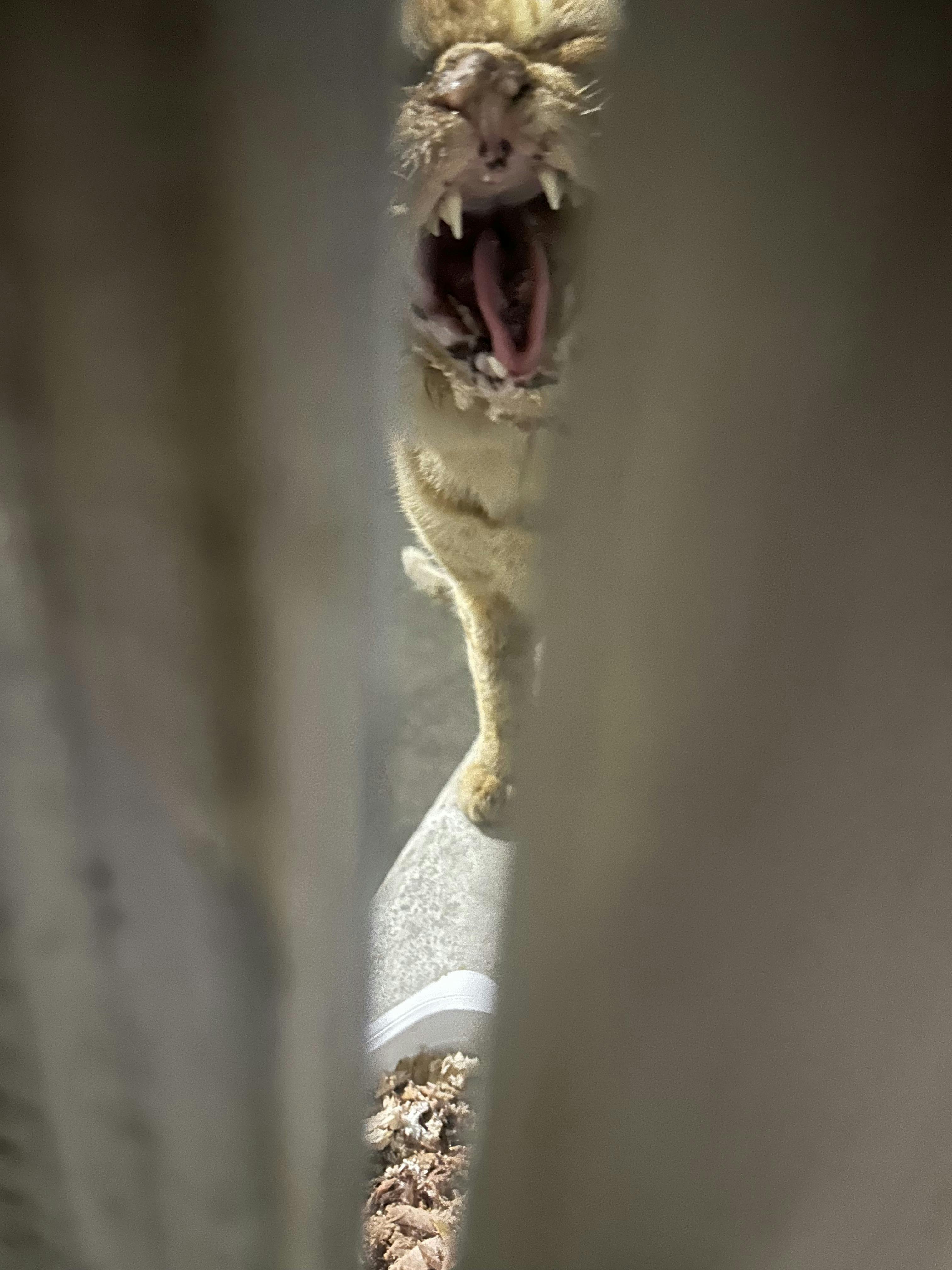 凄まじいです。日曜日だけ現れます.私に向こうに行け!と威嚇してます。資材置き場の所にいます。囲われてますから