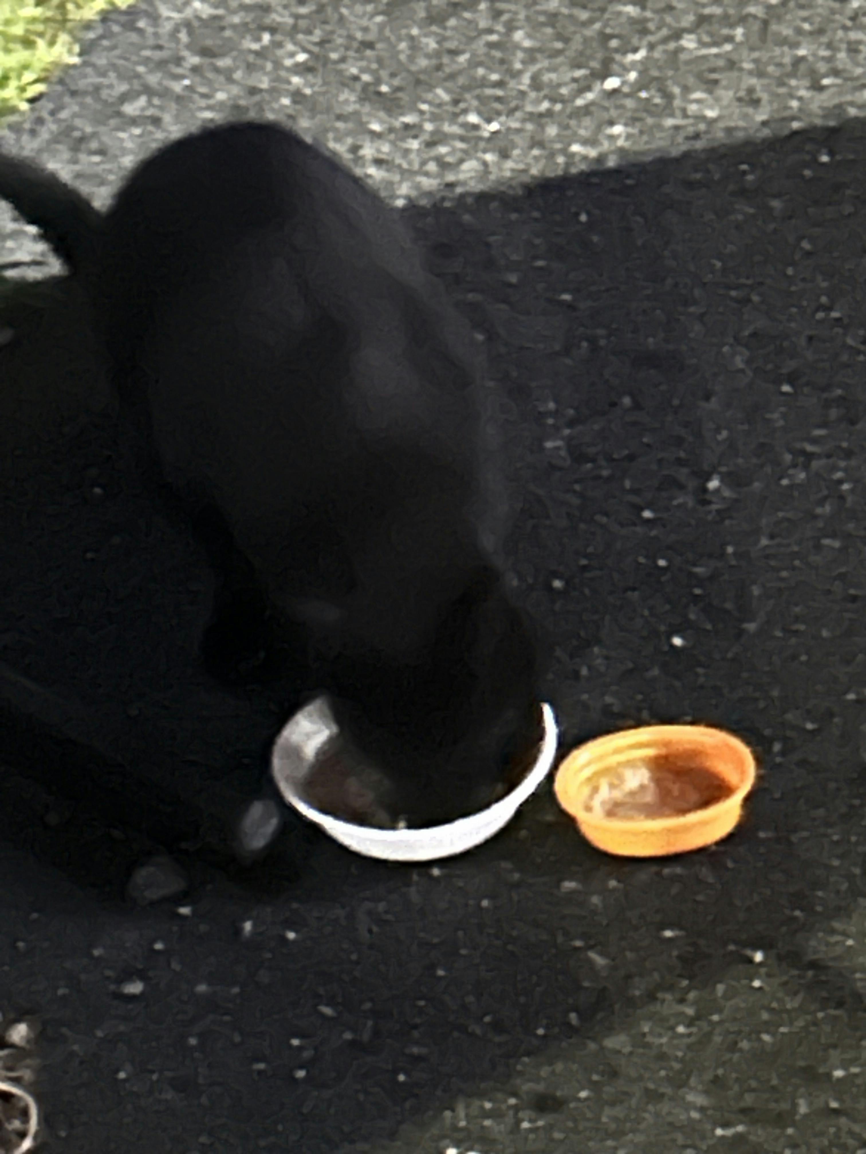 雨の日 つらいです。食べる方も配る方も必死になります。写真はペー②さんです。3日ぶりに現れました。