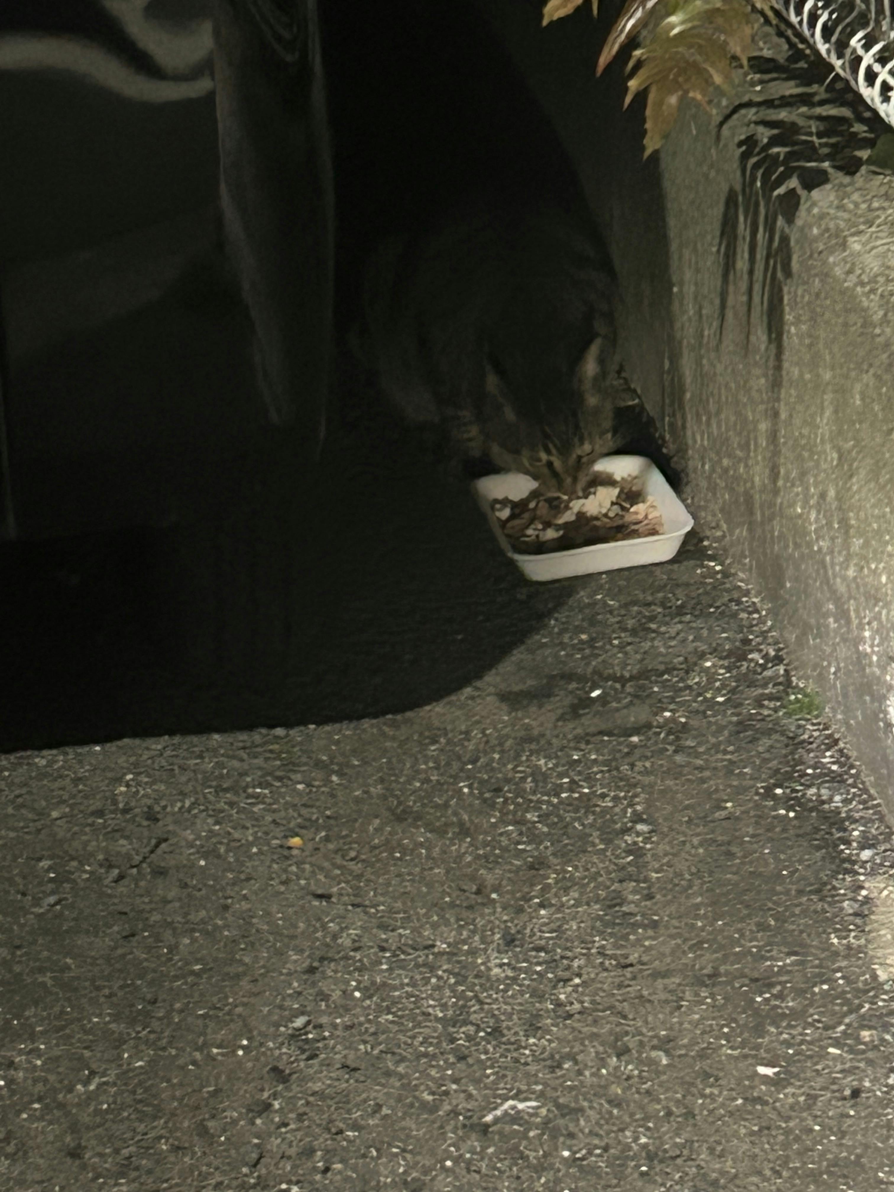 外猫達は元気です。みんな無我夢中で食べてます。かぶりつくって感じです。