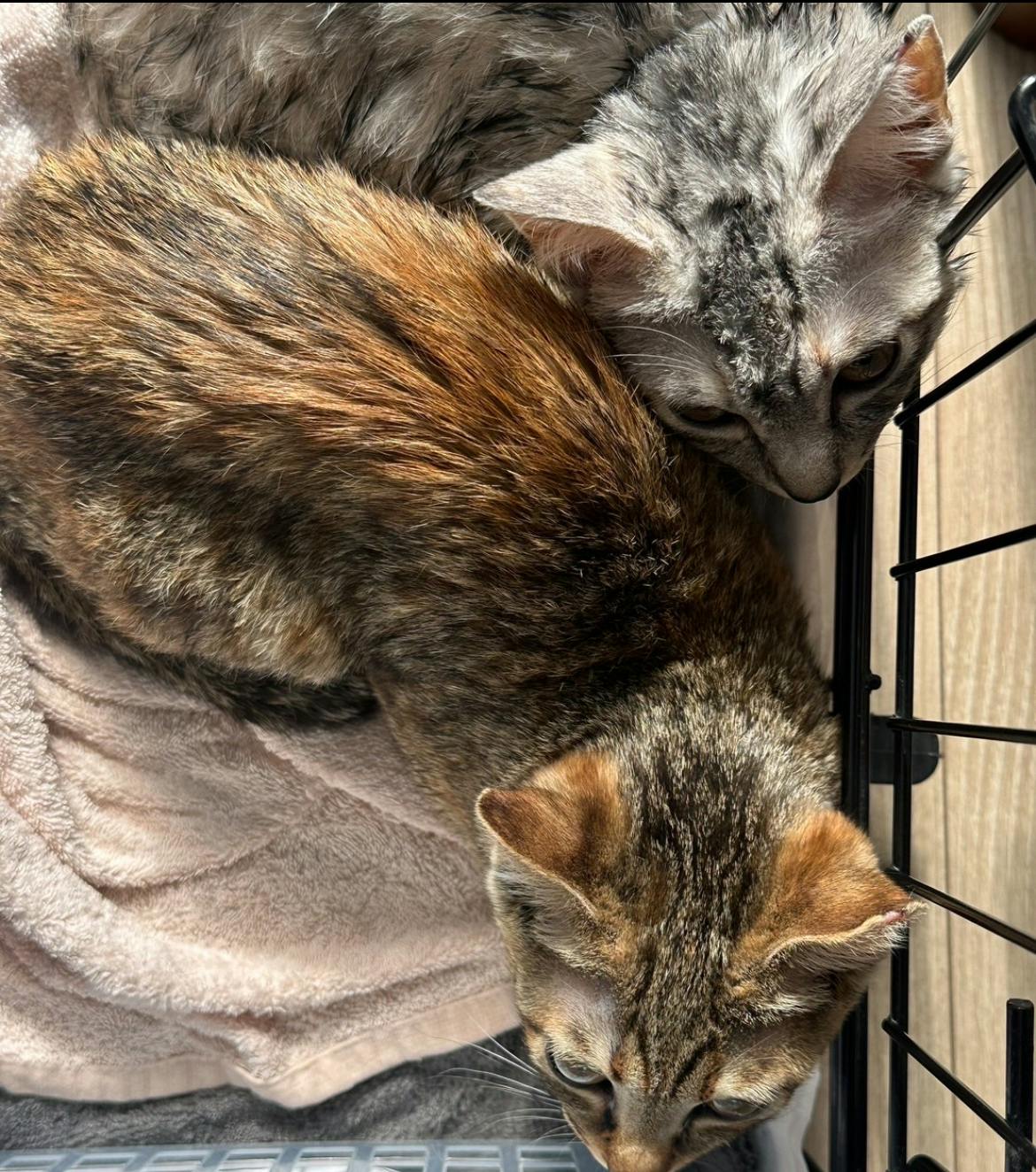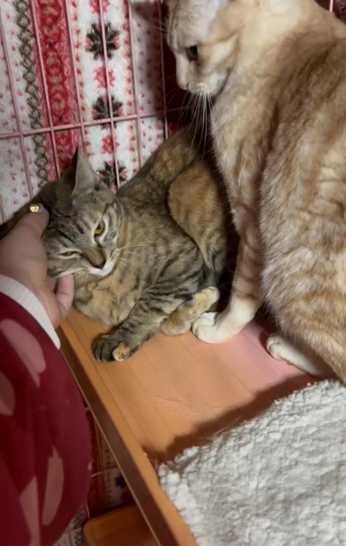 フードも食べ トイレ模して、昨夜から撫でてもらってます。保護の時、麦わらエピちゃんが10日早くシェルターっ子になったんです。エピちゃんが居なくなり、庭で探しては鳴いてた、、と聞きました。