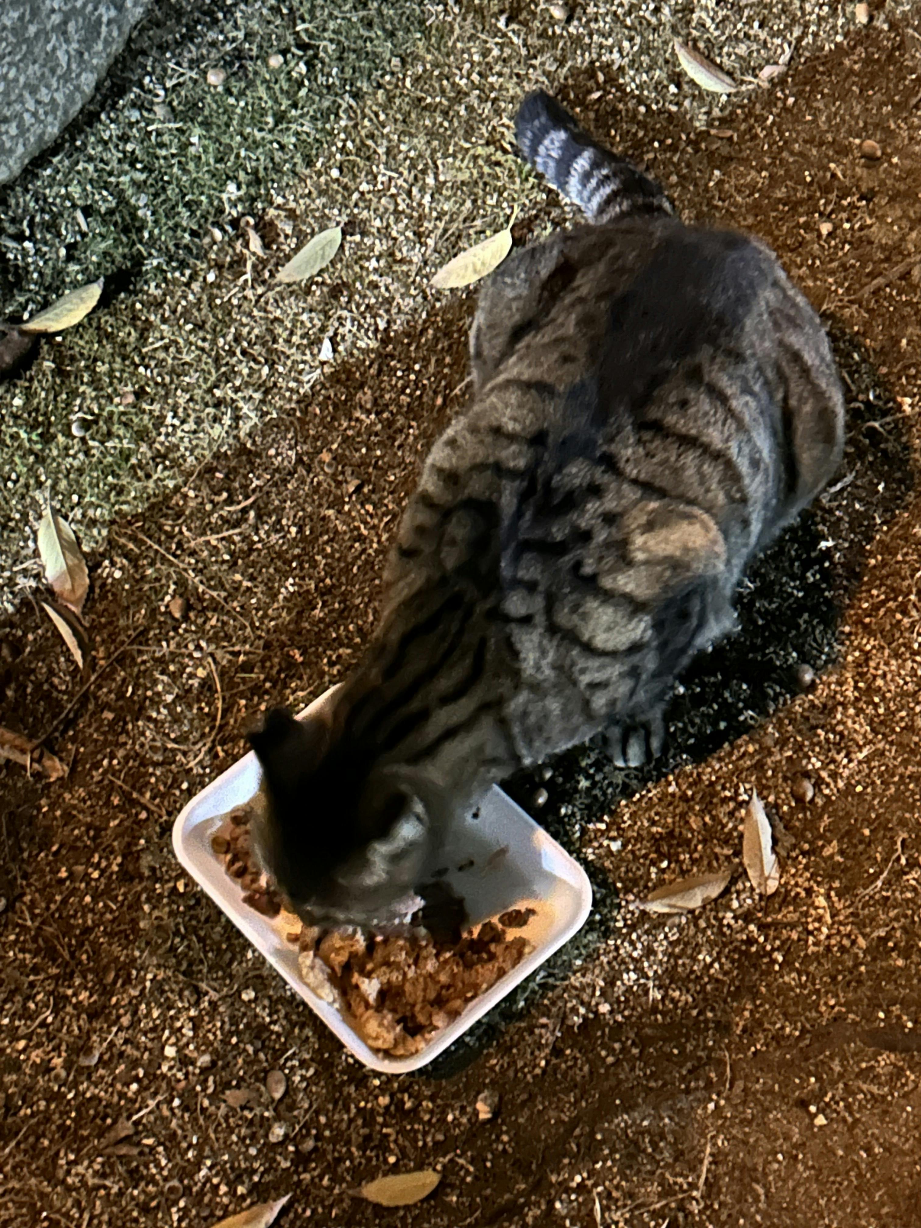 昨夜は1時間待って会えました。置き餌すれば良い事なのですが、冷え切ったパウチを食べさせたくなくて私は待ちます。