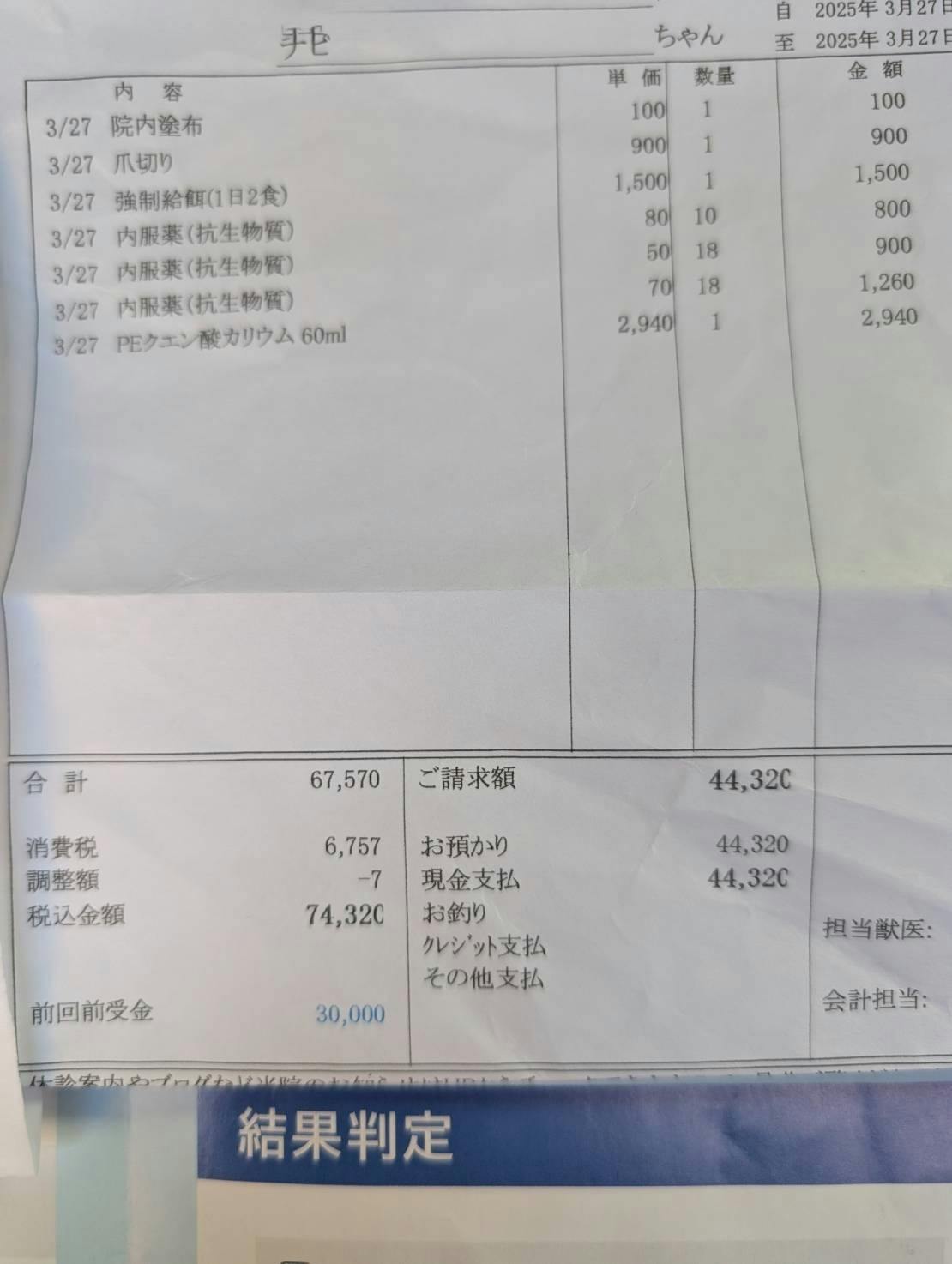 肺炎だそうで、ちゃんと食べれてないので毎日点滴と強制給餌。でも吐き出しちゃうんです。