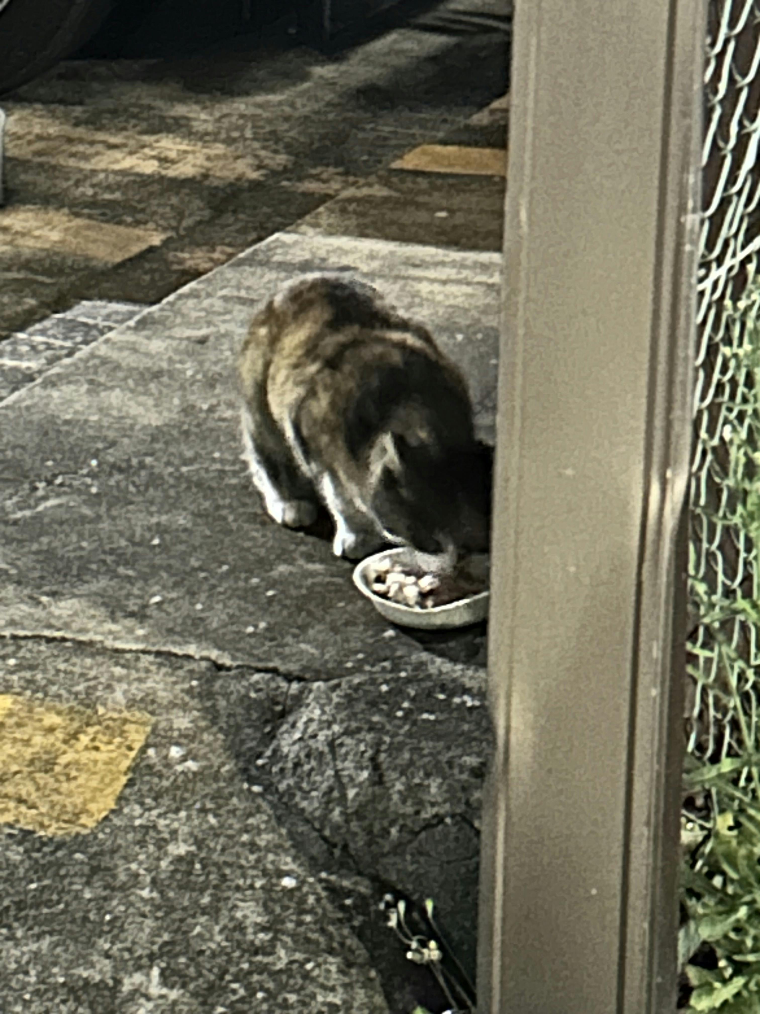 この子は三毛ちゃんも今夜は、なおみさんからの贈り物のシラス入りマグロを食べてます。