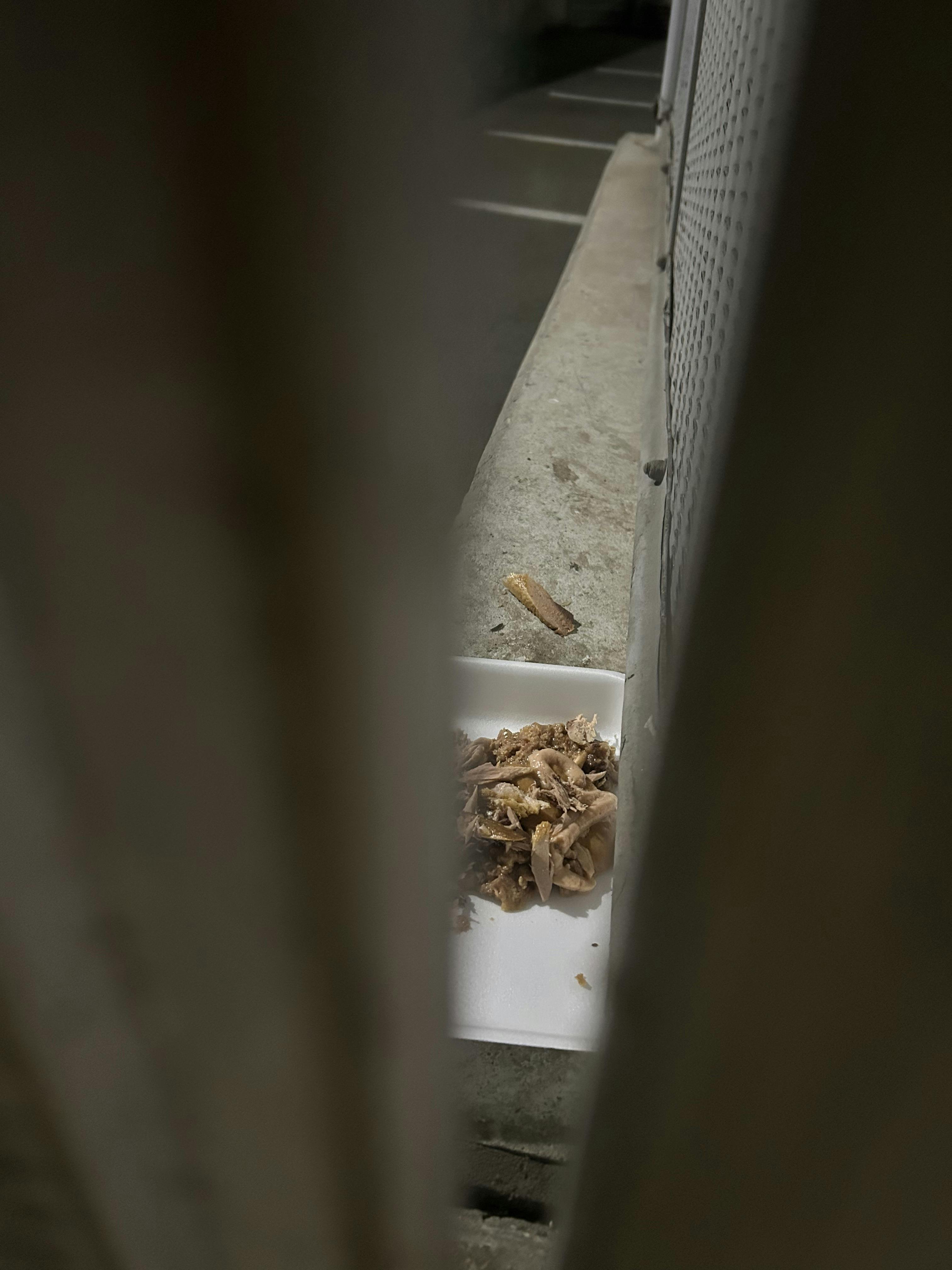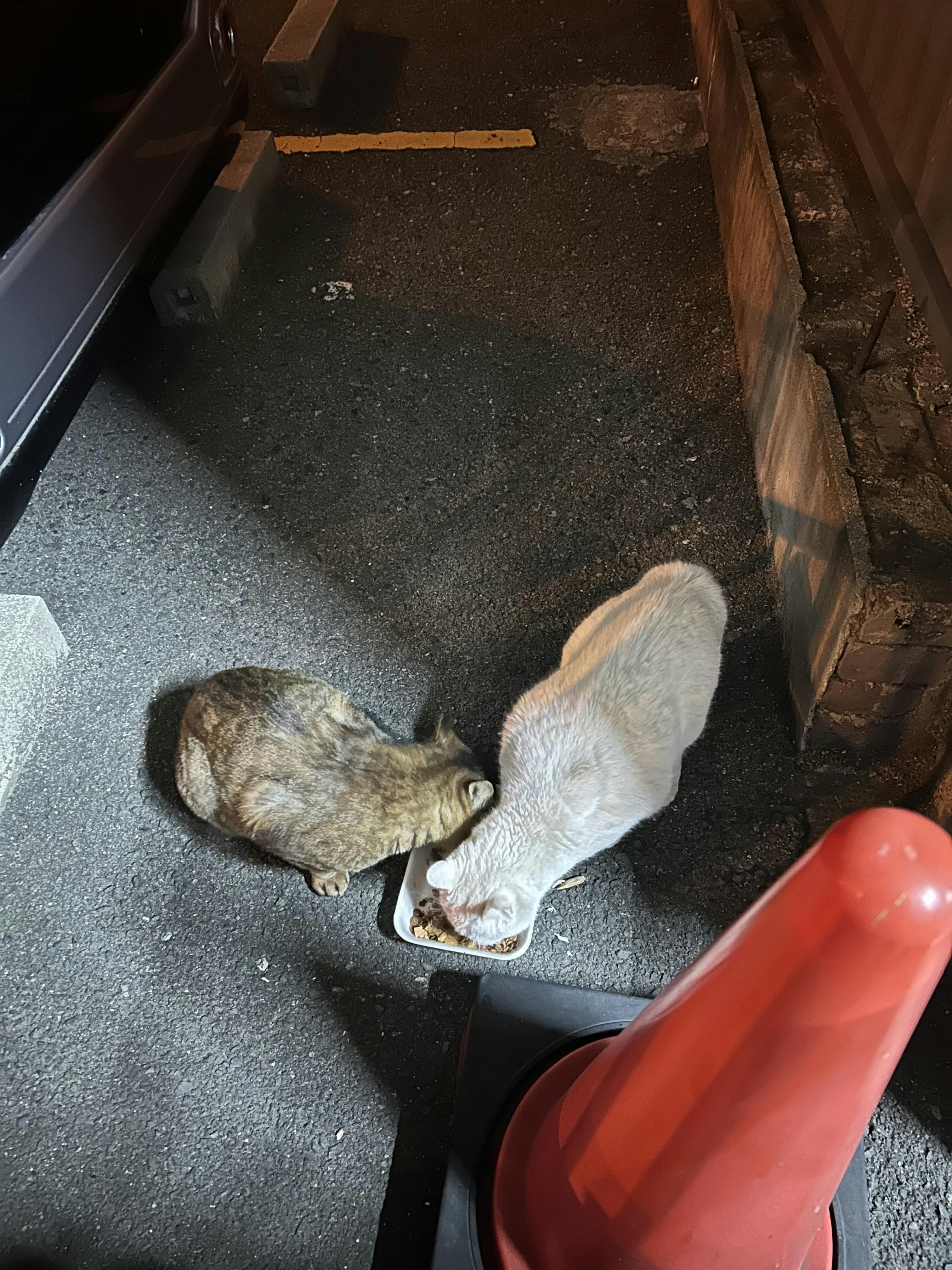 いつ来るか分からないから毎日、こうして置いてます。とある公園茶トラ君へ。12時に置いて3時に見に来ましたが食べてなく回収しました。