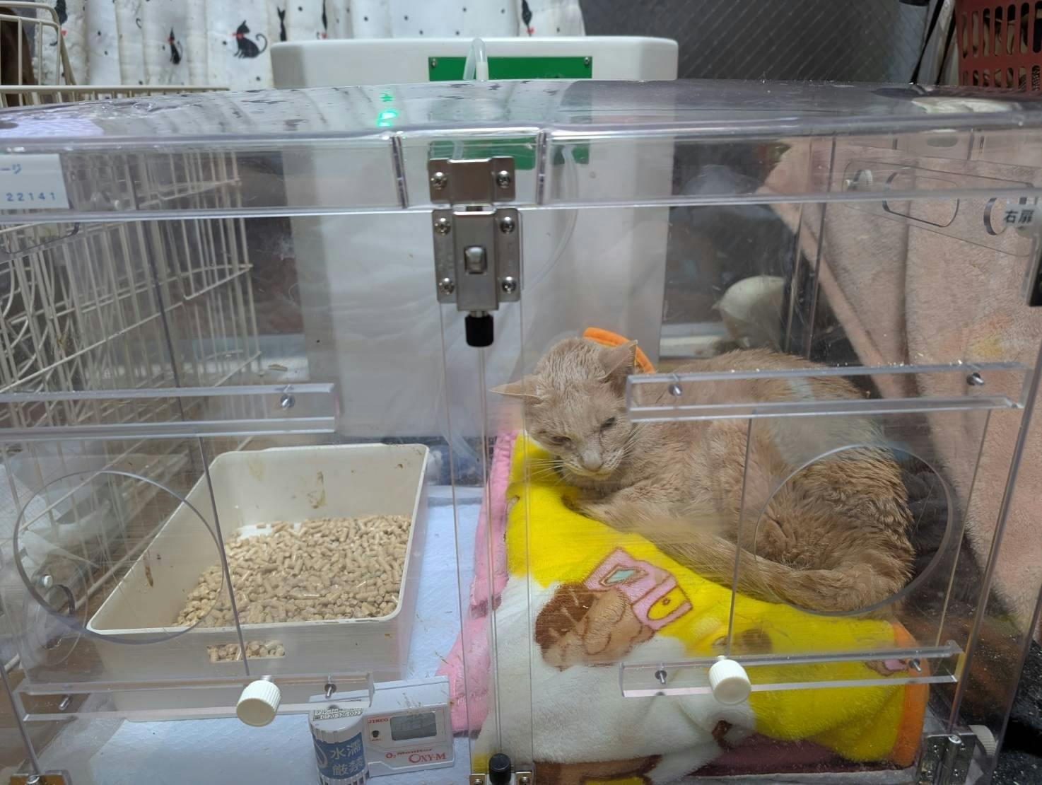 名前 チビちゃん。今肺炎で息苦しくて酸素室に入ってます。私の活動と外猫のエサの配達を手伝ってくれてる竹内さんの愛猫です。29匹の猫を保護し、私が保護した乳飲み子のミルクボランティアもしてくれ、年末には猫一家8匹の捕獲もしてくれました。私に任せて!治療費は心配しなくて良いよ!と言いたいのですが、悲しいかな、、私も紀伊の保護に50000円掛かり、風邪のなっちゃんの治療と、海外から取り寄せる薬などで余裕がありません。皆様からのたくさんのフード支援を頂いてるのに、、、と迷い迷いました。どうかチビちゃんの治療費の応援をお願い致します。竹内さんからチビちゃんのお話を聞きました。『うちの裏庭に兄弟2匹で現れて、手術して地域猫としてフリーで様子見てたら冬に動けなくなって、低体温で保護してうちにいます。4年ほど前に生まれて保護したのが三年前。肺炎だそうで、ちゃんと食べれてないので毎日点滴と強制給餌。でも吐き出しちゃうんです。酸素室は先月は日割り計算なので基本料金の5500円を先に払い、クレジットカード登録をし、月末に精算になるので今月末にせいさんです。先月は1日1200円で3日間で3600円の基本料金で9100円今月は15日以降まで借りるならセット価格で18500円になるそうです。15日以内の返却なら日割り計算でまだ領収書がないんです。食欲もなく強制給餌をしても自ら酸素室に帰っていくのでしんどいのだろうと。。。もともとウエットフードも好きじゃないし、食欲もあまりない子なので手こずってます。今月いっぱいは酸素室入りそうだと思ってます。回復するればすこしずつ酸素濃度を下げて様子見ながら外の生活になれてもらうんですが、食欲がない分なかなか回復できてないです。でも少しずつ起きてる時間がでてきたり、ぐったりとした感じよりはマシになってます。まだ呼吸がはやいので酸素室からはでれないです。』元気な時のチビちゃん。今までに掛かった医療費たくさんお願い!とは思っていません。少し助けてください。十分な治療をしてあげれないとき、私達は多頭飼育の事が悔しくなるのです。どうか、助けてください。