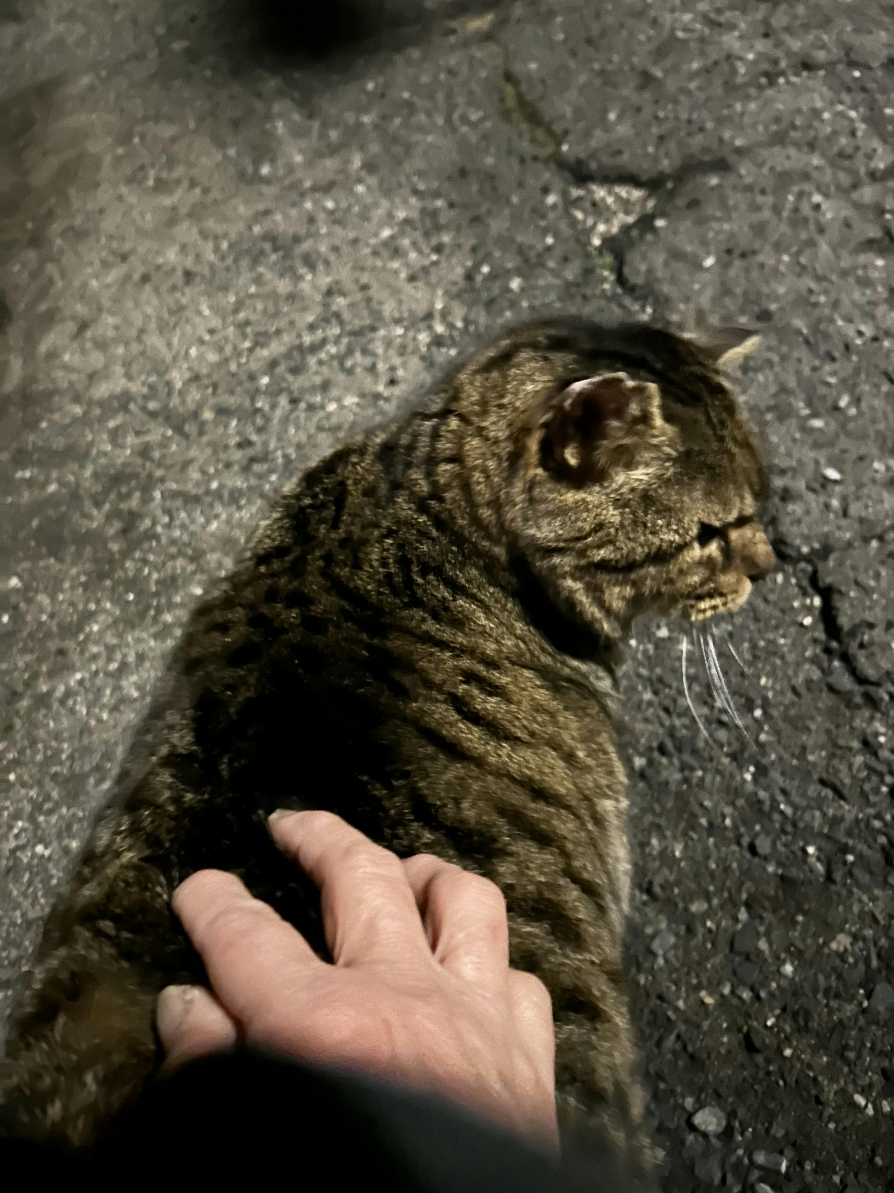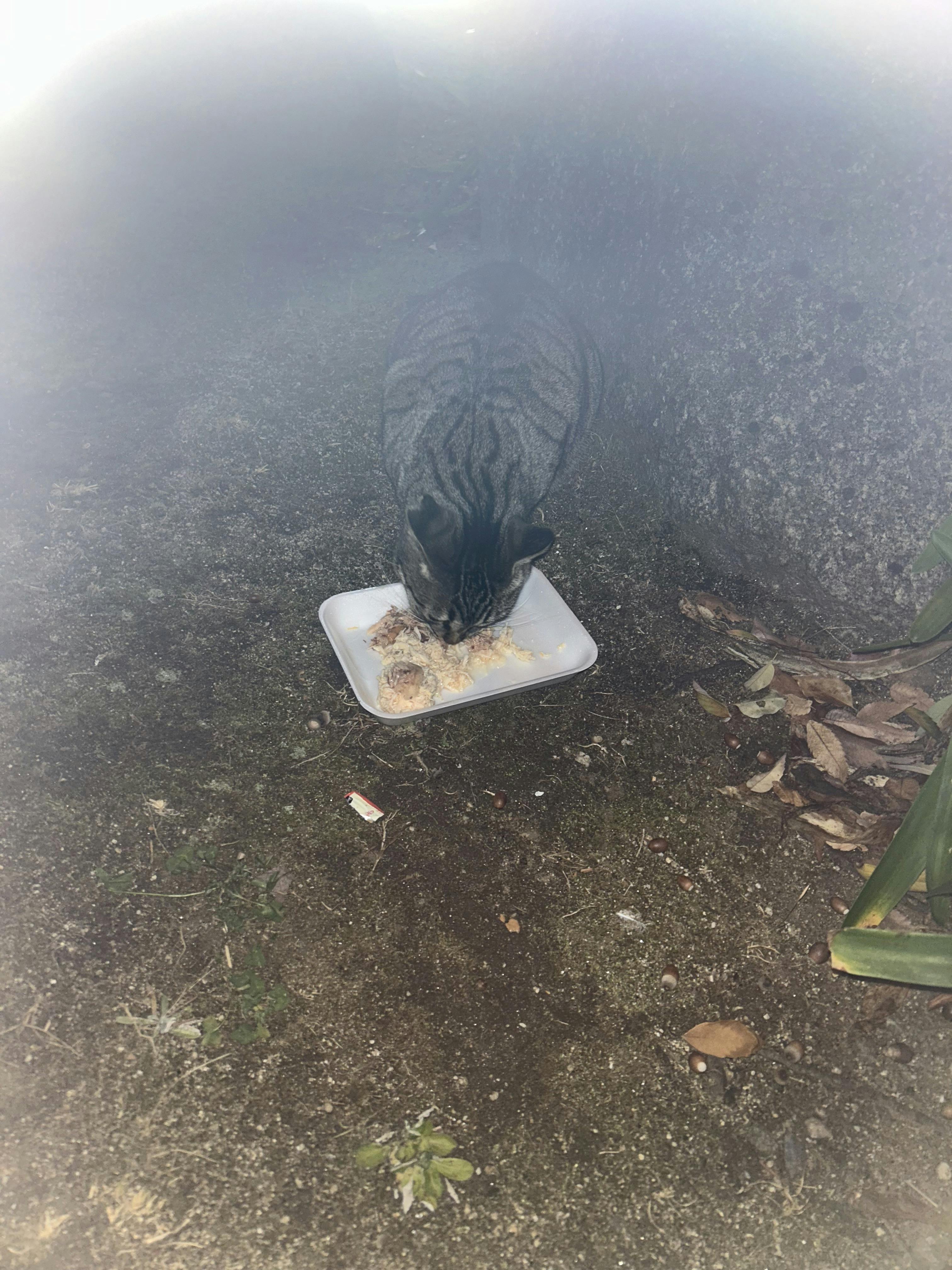 ラストニャンはデカ太郎でした。11時に食べて帰り,器取りに来るam3:00頃に,ずーと待ってたよ〜ぽく岩のように私が来る方向を向いて座ってます。私の手の温もりを待ってます.体がほんのり温まってきても,すぐに冷えてしまうけど一生懸命撫でます。そして,夜食を食べてる間に私は帰ります。寒い中,みんな頑張ってました.会えなかったのは紀伊君ですずーっと待っていたのですがトイレに行きたくなり,家に戻った間に来てたみたい。置いてたカリカリが減ってました後から2回,公園に寄りましたが居なかったです。今日の方が寒い.頑張ります。