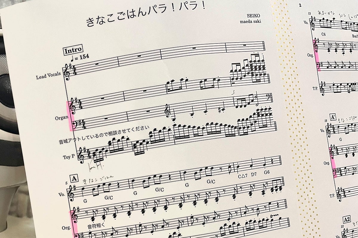 【きなこごはん】をテーマにした曲を作ろうと決めてから約半年。歌詞とメロディから作り始めたのが『きなこごはん パラ!パラ!』という曲です。