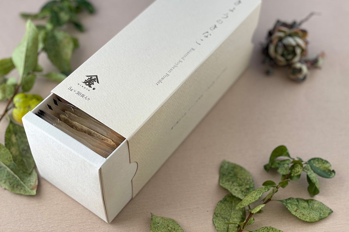 最大の特徴は、皆さんの「使い切れない」「味が飛んでしまう」という悩みを解決するために、1回で1袋ずつを使い切りで食べられるように「一袋5g」で少量ずつ個包装して箱入りした点。良質な国産大豆のみを使用した “香り高いきな粉” をいつでもお楽しみいただけます。