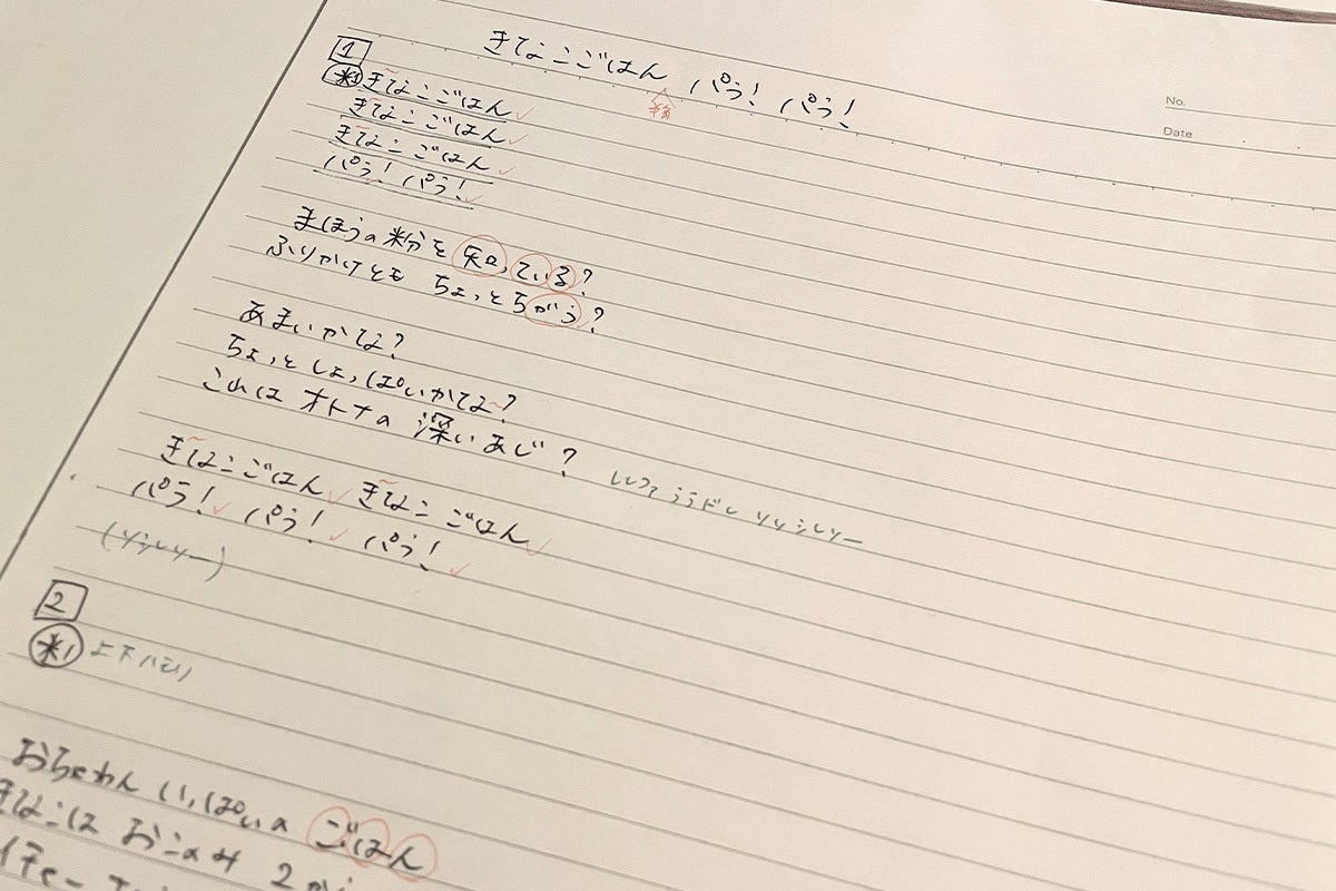 一番始めに浮かんだ歌詞が、「きなこごはん」という言葉と、そのご飯の「パラパラ」という状態をくっつけたこの言葉でした。その後の展開がなかなか浮かんでこず、実はモヤモヤとした気分が続いていましたが、今年の6月から7月にかけてババっと降りてきて、一気に1番と2番の歌詞とメロディラインを一気に完成させました。