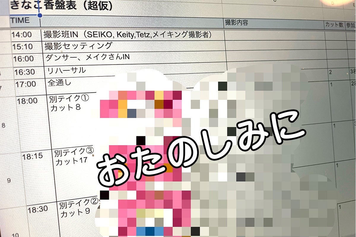昨年中はお世話になりました。今年も宜しくお願いします!年末に、振付師のKEITYより振り付けの動画が送られてきました。とってもキャッチーで、老若男女踊りやすいダンス!そしてとうとう私の曲に踊りがついてしまい、大興奮の年末でした。そして新年早々、動画制作チーム「キナ・クルー」で打ち合わせ、撮影の手順や、すり合わせをしました。経験者である2人にサポートしてもらって、なんとかダンス動画の制作のど素人である私が「香盤表」(製作スタッフが配役やスケジュールなどを書き込んで使用する一覧表)なるものを制作するにこぎ着けました。希望の条件やスケジュール感でお願いしたい撮影スタジオをあたり、1月中は難しかったのですがなんとか2月の頭に撮影ができることになりました。制作、発表するのは下記の3つの動画です。・ダンスミュージックビデオ・振り付け指導動画・それを撮影したメイキングビデオ2月の末にはみなさんに見てもらえるようにしたいという思いで動いております!現在、衣装の手配、飾り付け、リターンの制作物の作業、私のダンス練習(汗)など...頑張っております!気長に楽しみに待っていてくださると嬉しいです!ひきつづき宜しくお願いします。