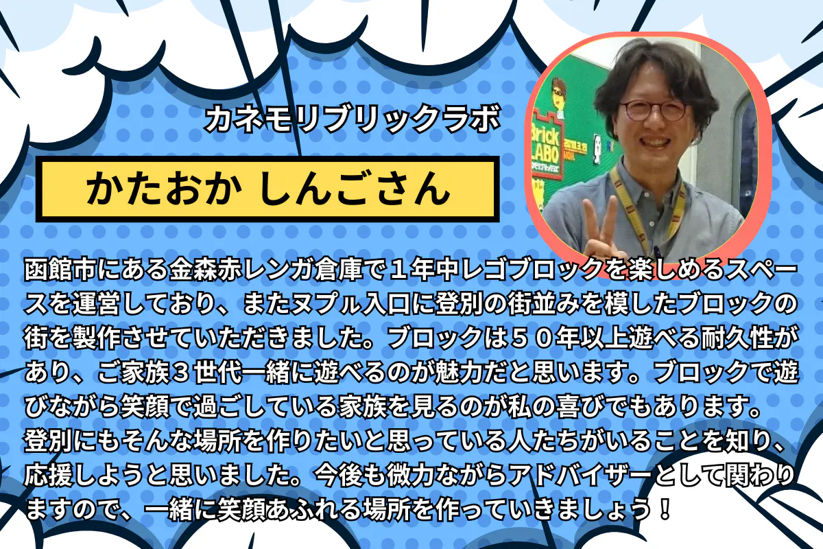 ヌプㇽが運営し、大量のブロックは北海道函館市にある「カネモリブリックラボ」のかたおかしんごさんが貸してくださいました。
