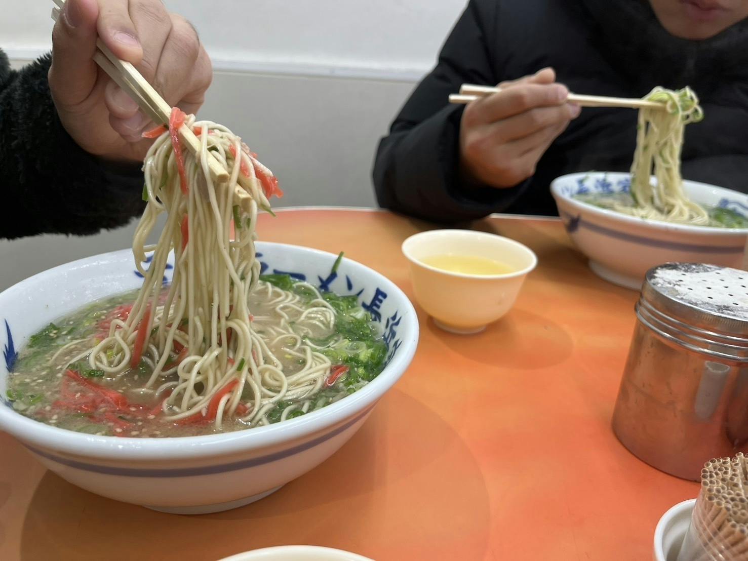 「皆してるよ。そうしないと、全部の麺を食べることはできない」