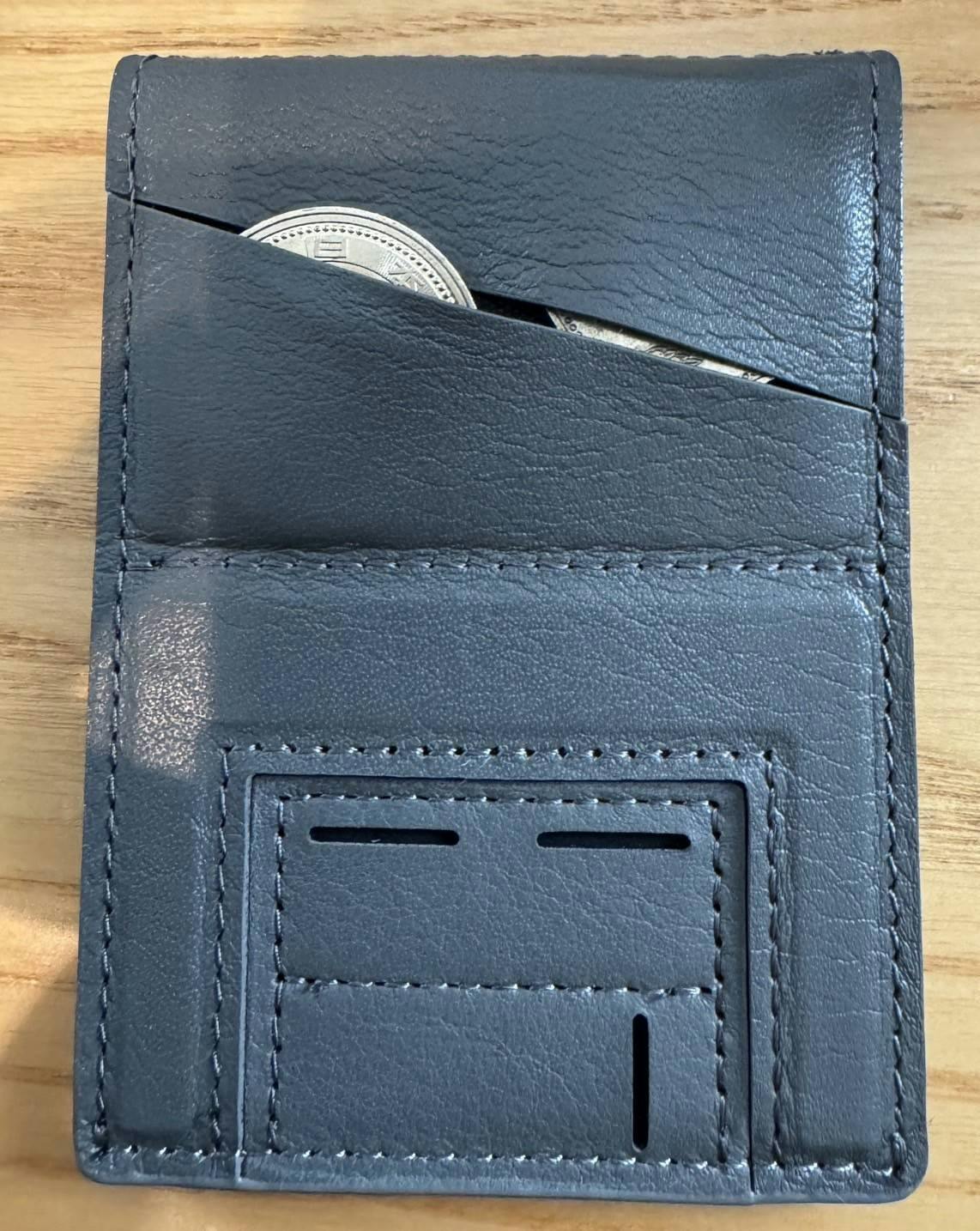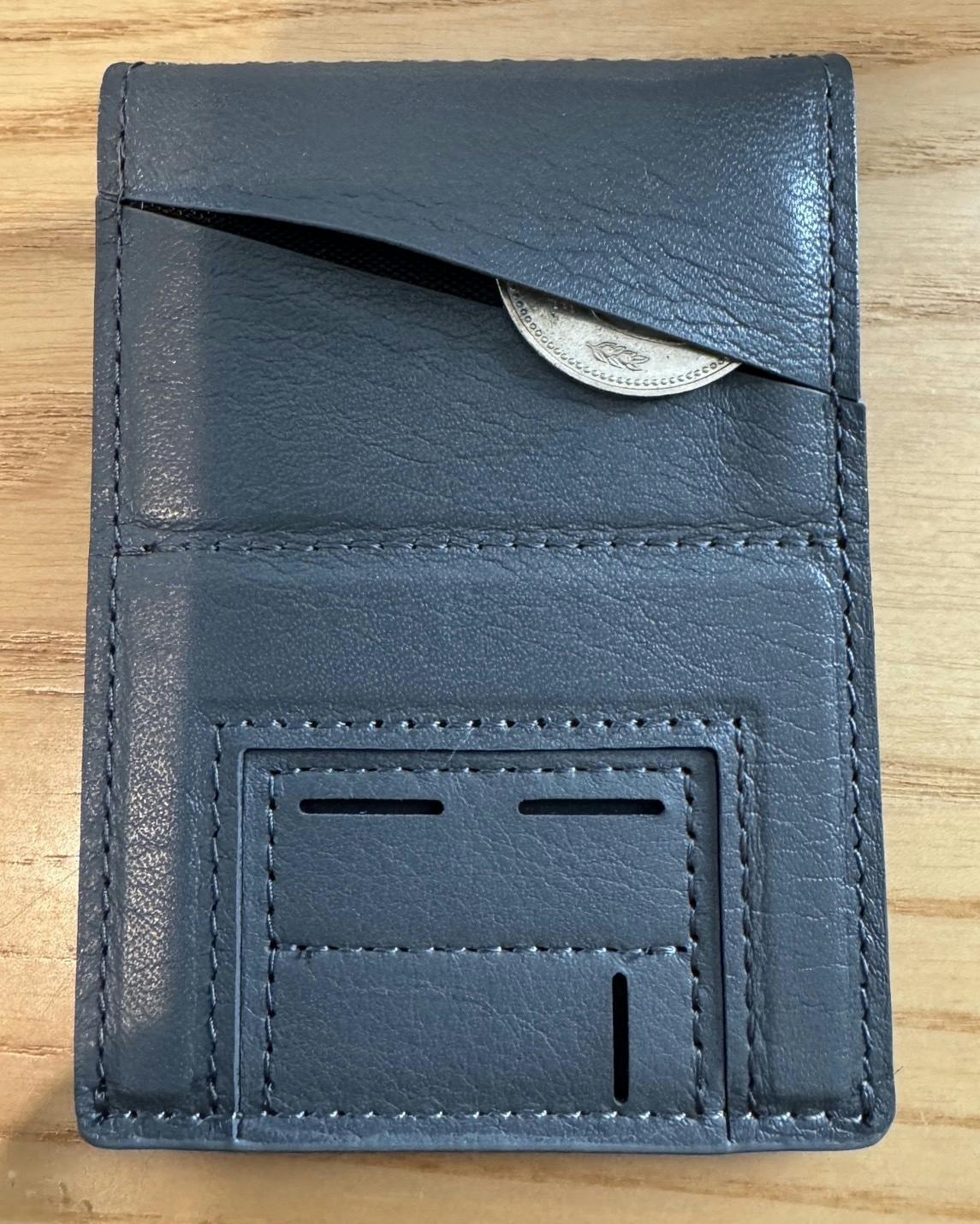 今回のウォレットは、「フラットでスマートな見た目」を重視したデザインとなっており、硬貨の出し入れに上記のようなコツが必要となります。