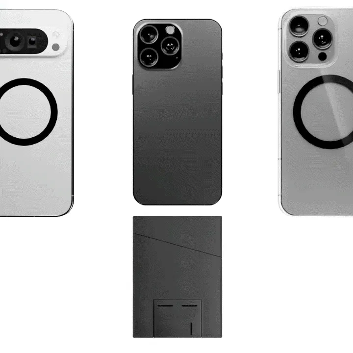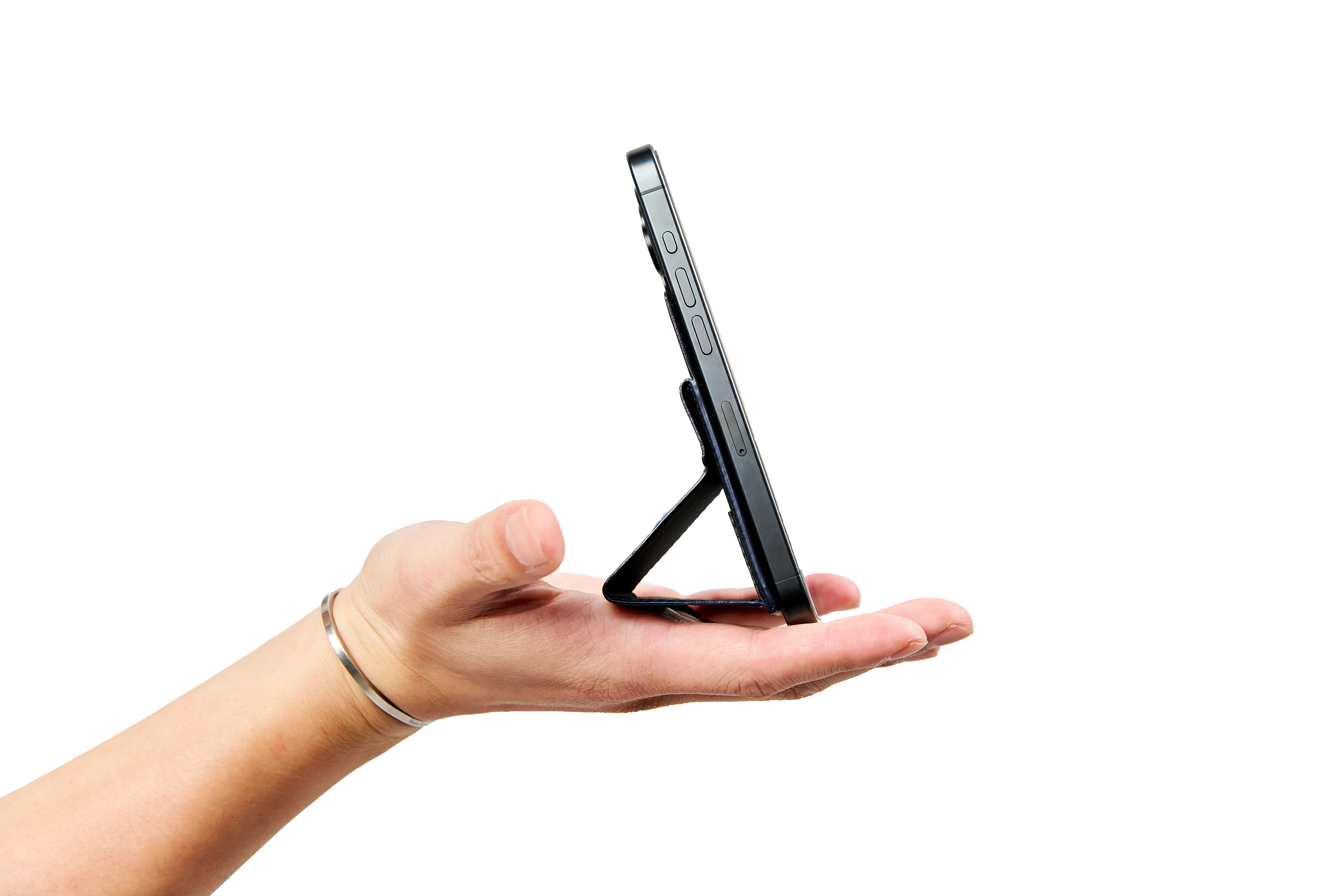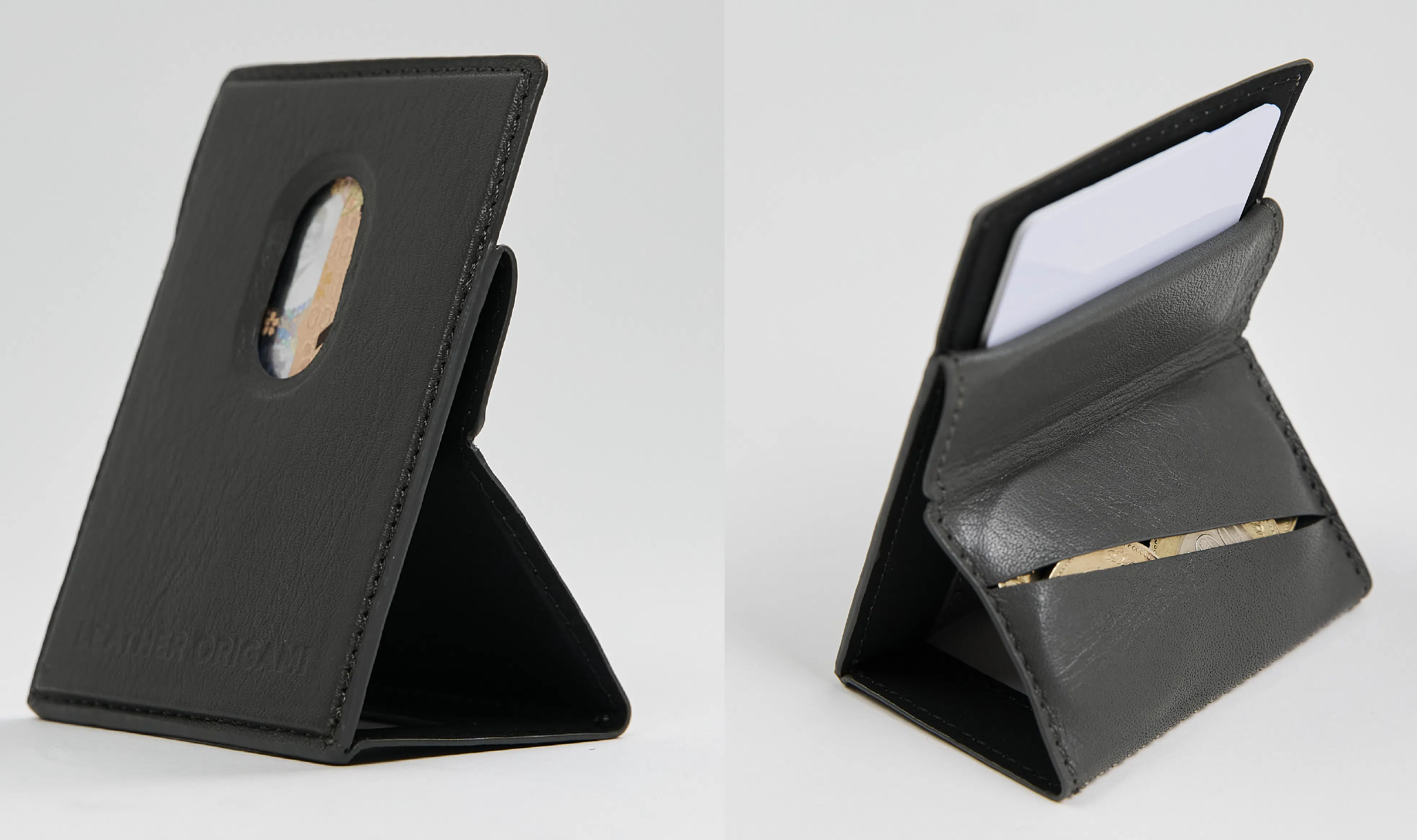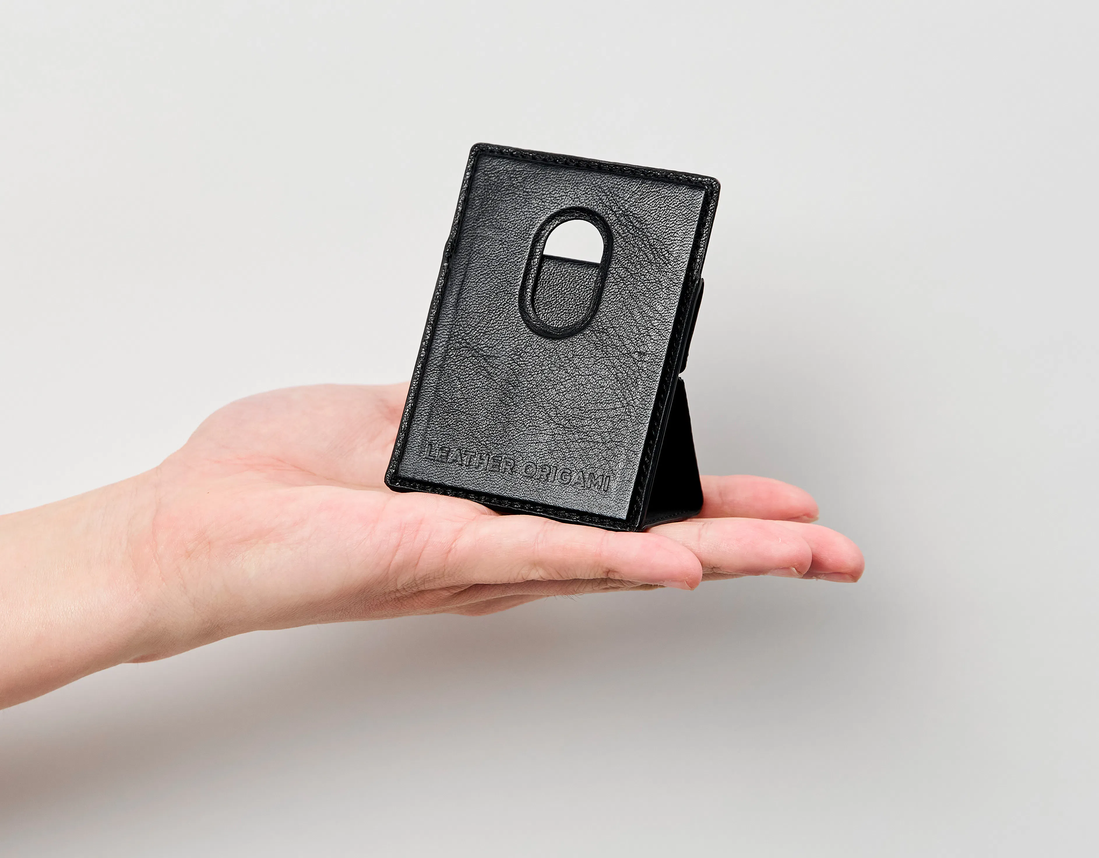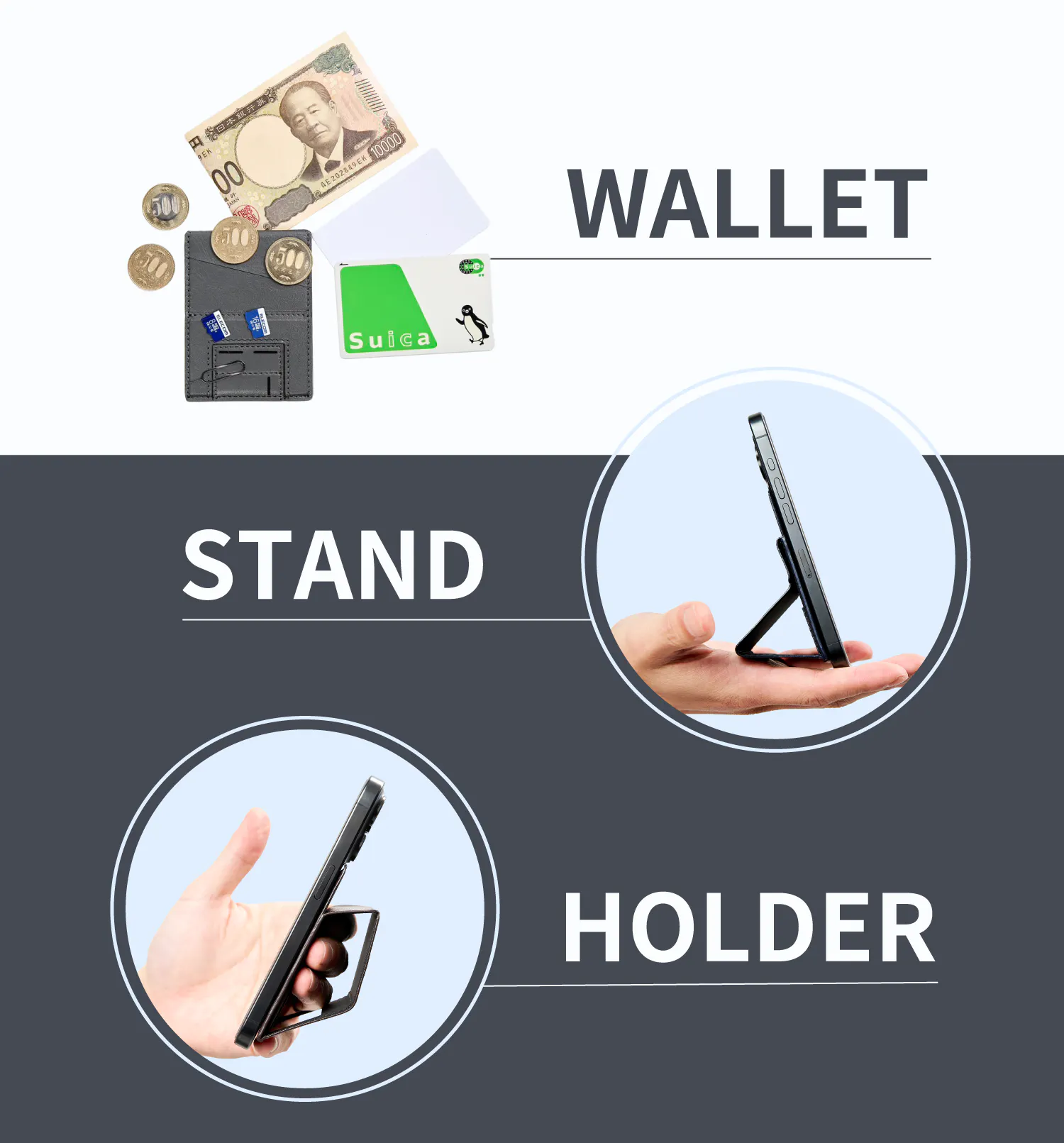 ミニマルな財布が、スマホスタンドや、スマホリング(ホルダー)にワンタッチで変形。