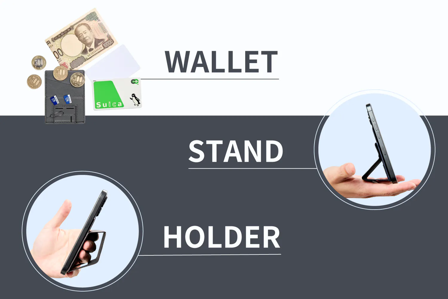 財布、スマホスタンド、スマホリング(ホルダー)の3WAY機能で、日々の生活を快適にアップデート。