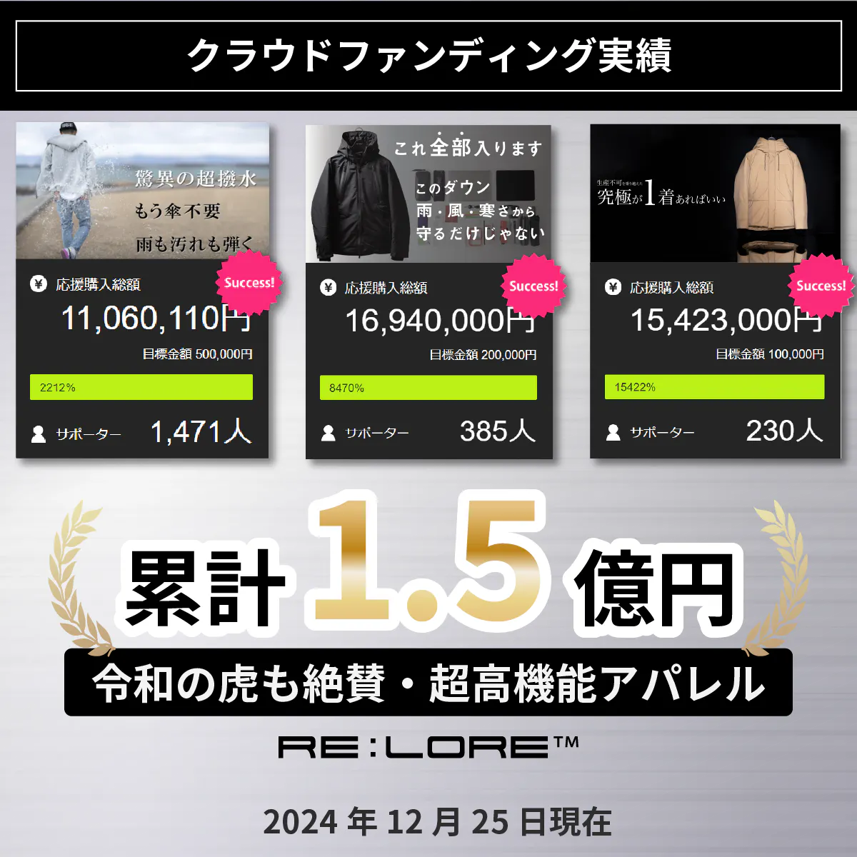 RE:LOREというブランドにご賛同していただき、完全ALLを達成しました。