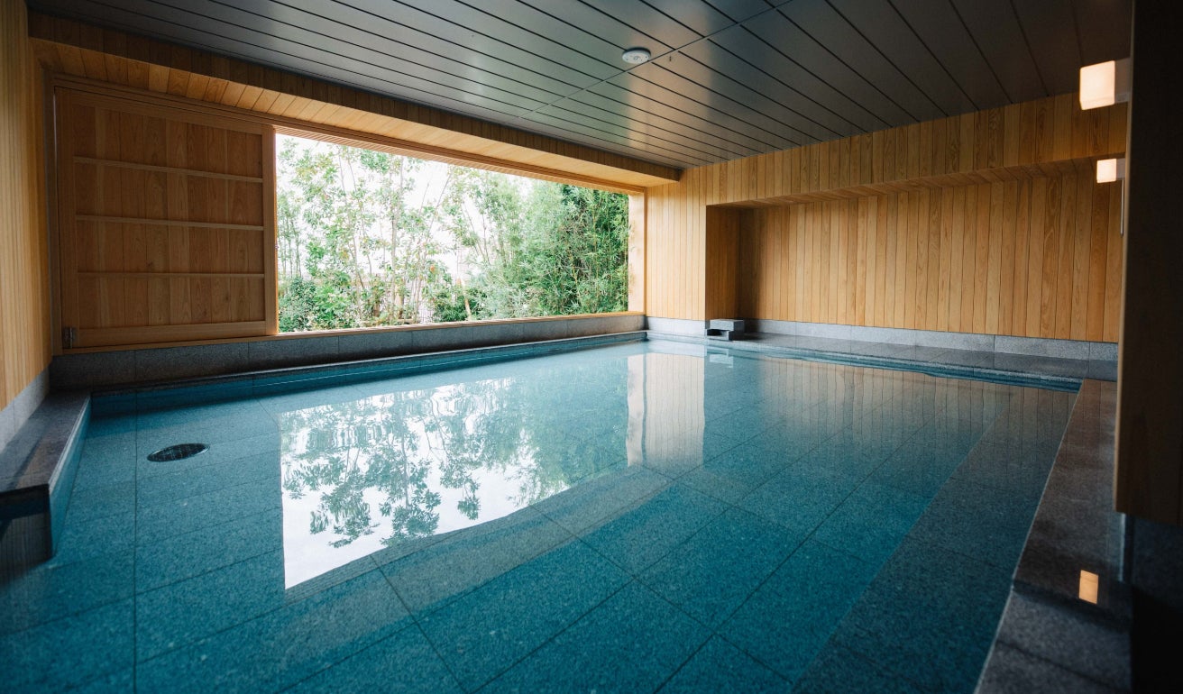 サウナ室の中では、ごくわずかな自然光が入る暗闇の中、自分自身に向き合う内省の時間を過ごし、そこから外へ出て、一気に解放されるかのように光り輝く自然の息吹を全身で感じる。