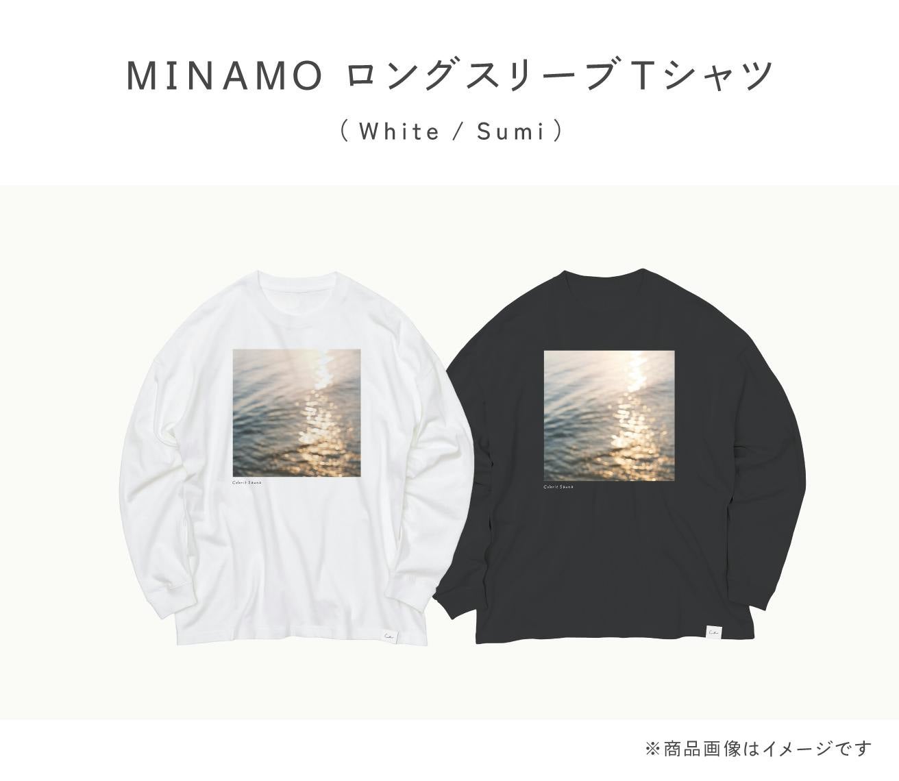 カラリト五島列島の目の前に広がる海。 その穏やかな水面の写真を大胆にレイアウトしたオーバーサイズでゆったりした着心地のロングスリーブTシャツ。