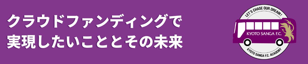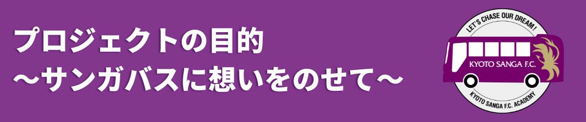京都サンガF.C.が常に輝き続けるためには、その下部組織であるアカデミー選手をしっかりと育て、トップチームへ送り出すことが大変重要です。そのためには、アカデミー選手の練習環境を改善することが必須となりますが、その中でも、アカデミー選手の送迎や試合の遠征等で使用するアカデミーバスについて、現在保有する2台のうちの1台を中古で購入しましたことから老朽化が著しく進んでいます。