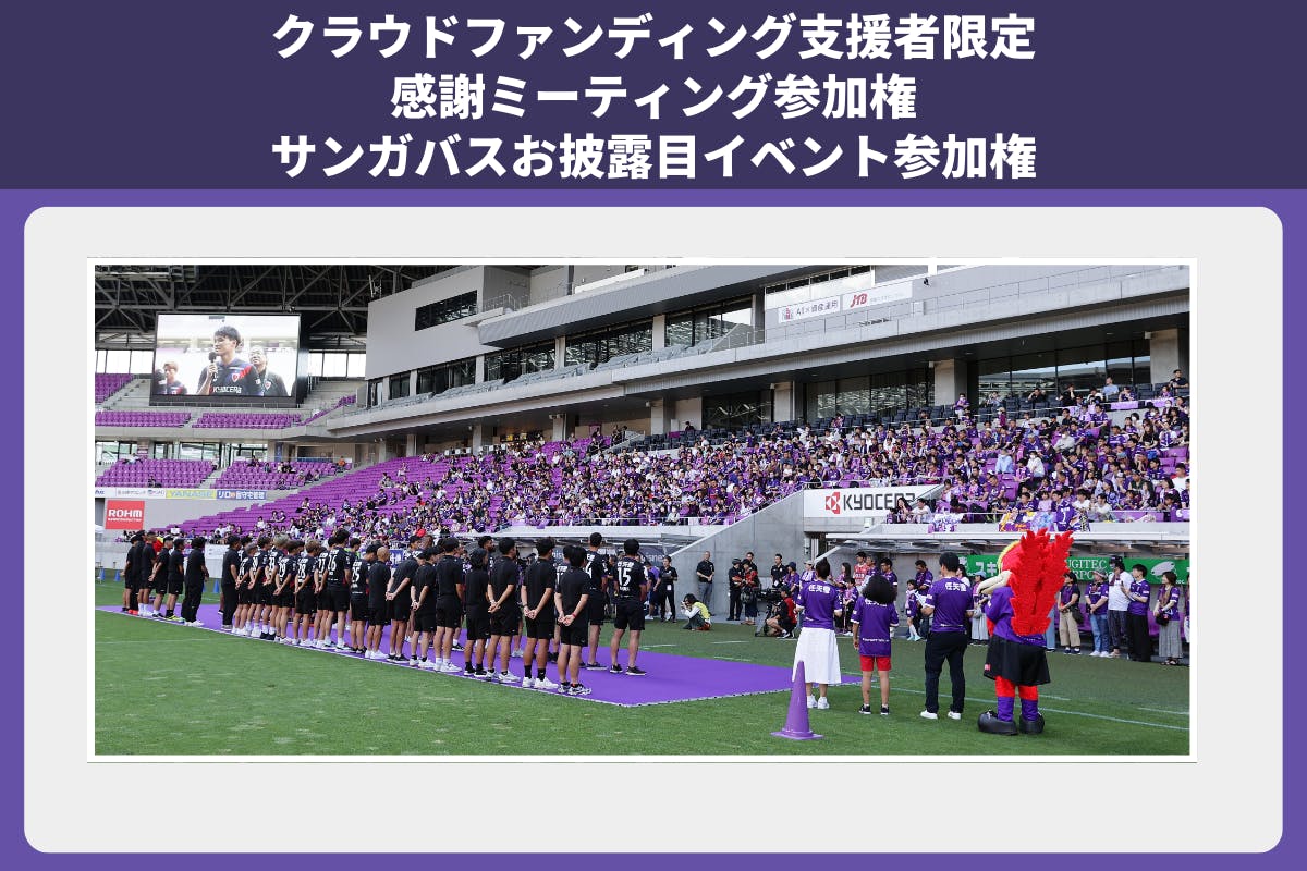 京都サンガのアカデミー出身選手を中心とした選手との交流イベントやサンガバスお披露目イベントをクラウドファンディングの支援者限定で実施します。