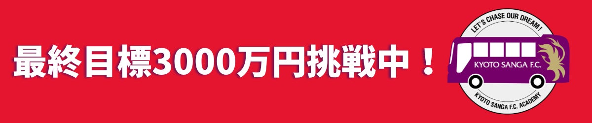 2025/06/16 12:01京都サンガF.C.でございます。2025年4月21日からスタートしました「京都サンガF.C.アカデミー選手のバスをリニューアル」プロジェクトが昨日6月15日をもちまして終了いたしました。最終目標を達成することはできませんでしたが、この間、多くの皆様からのご支援により、1,300万円を超える貴重なご支援をいただきました。ご支援をいただきました皆様、誠にありがとうございました。【結果】 最終目標金額 30,000,000円 支援総額 13,649,000円 支援人数 816人皆様からいただきましたご支援につきましては、アカデミーバスの製作費等に活用させていただきます。また、いただきましたご支援によりまして、新しいアカデミーバスは未来のサンガを担うアカデミー選手達により安全で快適な移動環境の提供などに大きく貢献するものと考えております。皆様のご支援が実を結ぶアカデミーバスに、ぜひご期待ください。引き続き、京都サンガF.C.へ熱いご支援を賜りますよう、よろしくお願い申し上げます。 もっと見る