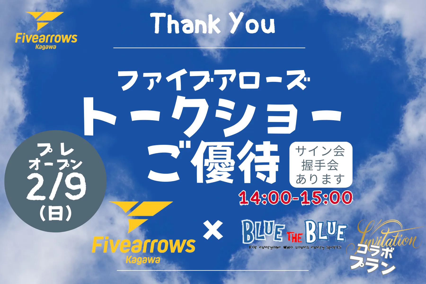 ファイブアローズの選手と一緒に飲食を楽しみながらトークショー&サイン・握手会までをお楽しみ頂けます!