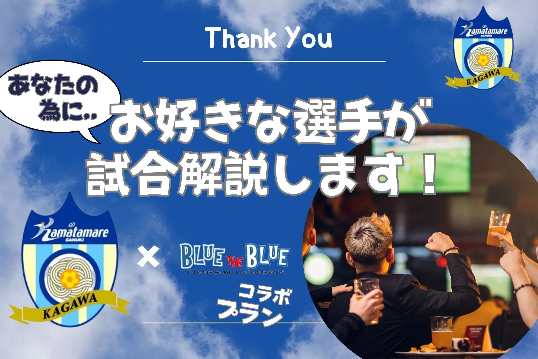あなたのお好きなカマタマーレ讃岐の選手が一緒に食事を楽しみながら、DAZNの映像でホーム戦の振り返り解説をいたします!