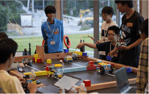 ロボット開発などの活動は主に学校の体育館などを使って行いますが、寮に宿泊することはできないので宿泊施設から学校への通いで3週間程度の合宿を行います。