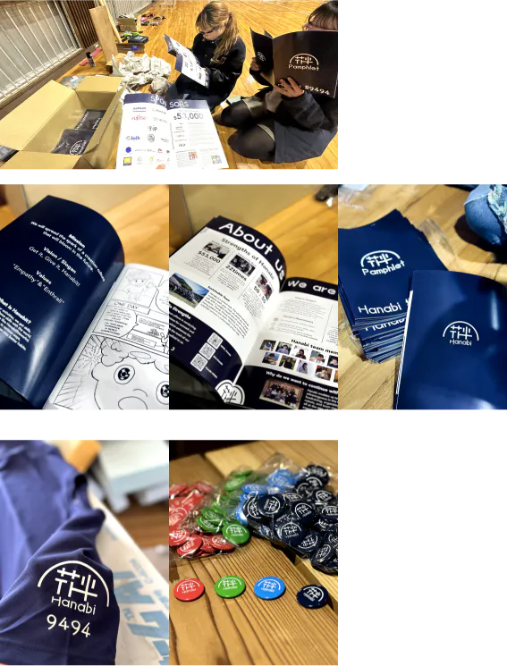 この班がHanabiの活動全てを支えています。運営班の主な活動はHanabiが活動するための資金を集めることです。学校のパートナーや徳島で活動する企業の方に掛け合い、私たちの活動を支援していただくパートナーを探します。
