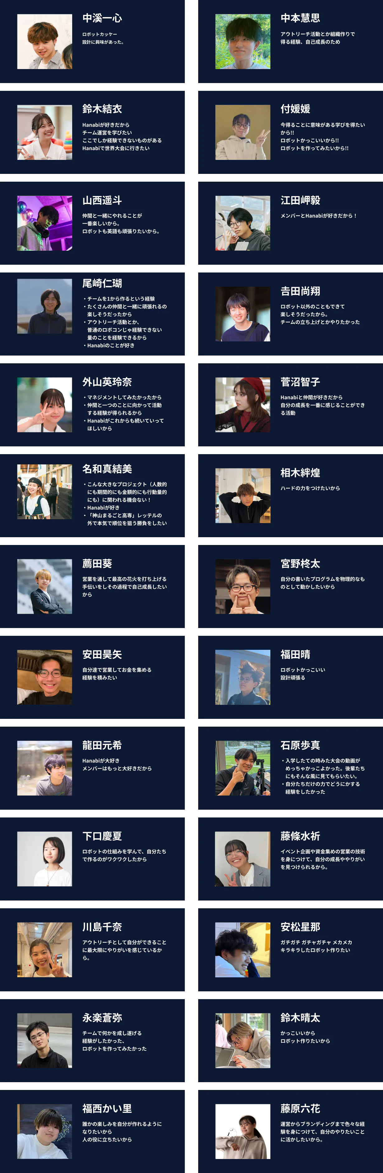 今年は企業と連携してプロダクト開発を行ったり、HanabiChildrenと呼ばれるSNSを開発・運営しています。日本全国に活動範囲を広げ、全国から参加者を募った 2泊3日のロボットコンテストを開催しました。『ロボットコンテストに参加するチームの開催するロボットコンテスト』という異質な状況ですが、参加者だけでなく運営にも学びのある活動でした。企業様からいただいた資金で宿泊費・食費・保険代などは無料で行われています。