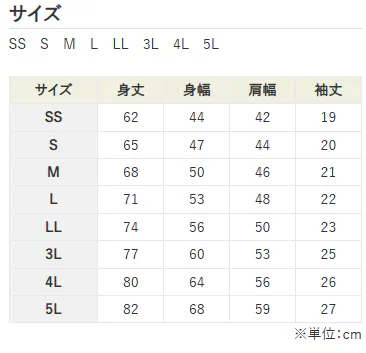 S, M, L, LLのサイズを予定しております。
