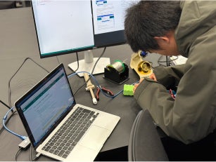 ハード班では、スワーブという高度なタイヤの機構の研究や、ロボットをスムーズに動かすためのカメラ開発を行っています。一方、ソフト班では、スワーブを制御するプログラムや、カメラで検知した情報をもとに自動運転を実現するプログラムの開発を進めています。