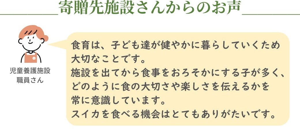 より安心して子ども達にスイカを提供して頂けるように、職員のみなさんに生産者の想いや支援者さんの存在をお伝えしております。