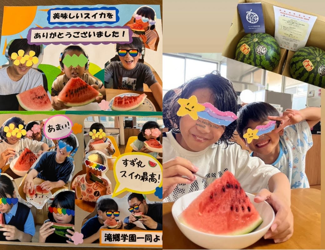 2026/01/08 13:38明けましておめでとうございます!今年も宜しくお願いします!先日、チンゲン菜の発送をもって無事全てのリターンのお届けが完了いたしました!昨年はプロジェクト4年目、最多人数&最多支援(スイカ100玉相当)をいただき、多くの子ども達及び職員の方々へお届けすることができました。施設さんからの寄せ書きはこちら(ログインするとご覧になれます。)「スイカが好きになった!」「大きくなったらスイカを作ってみたい!」そんな声まで飛び出し、私自身も胸が熱くなりました。 一つひとつのご支援が、子ども達の新しい「好き」や「挑戦」のきっかけになっています。本当にありがとうございます。この活動がこれからも、農業や食に興味をもつきっかけの1つになれると嬉しいです。今年も!子ども達が笑顔になれる取り組みを続けてまいりますので、引き続き応援いただけますと大変大変ありがたいです。今後ともよろしくお願いいたします!すず丸スイカ 前田すず香 もっと見る子ども達からの寄せ書き&お手紙