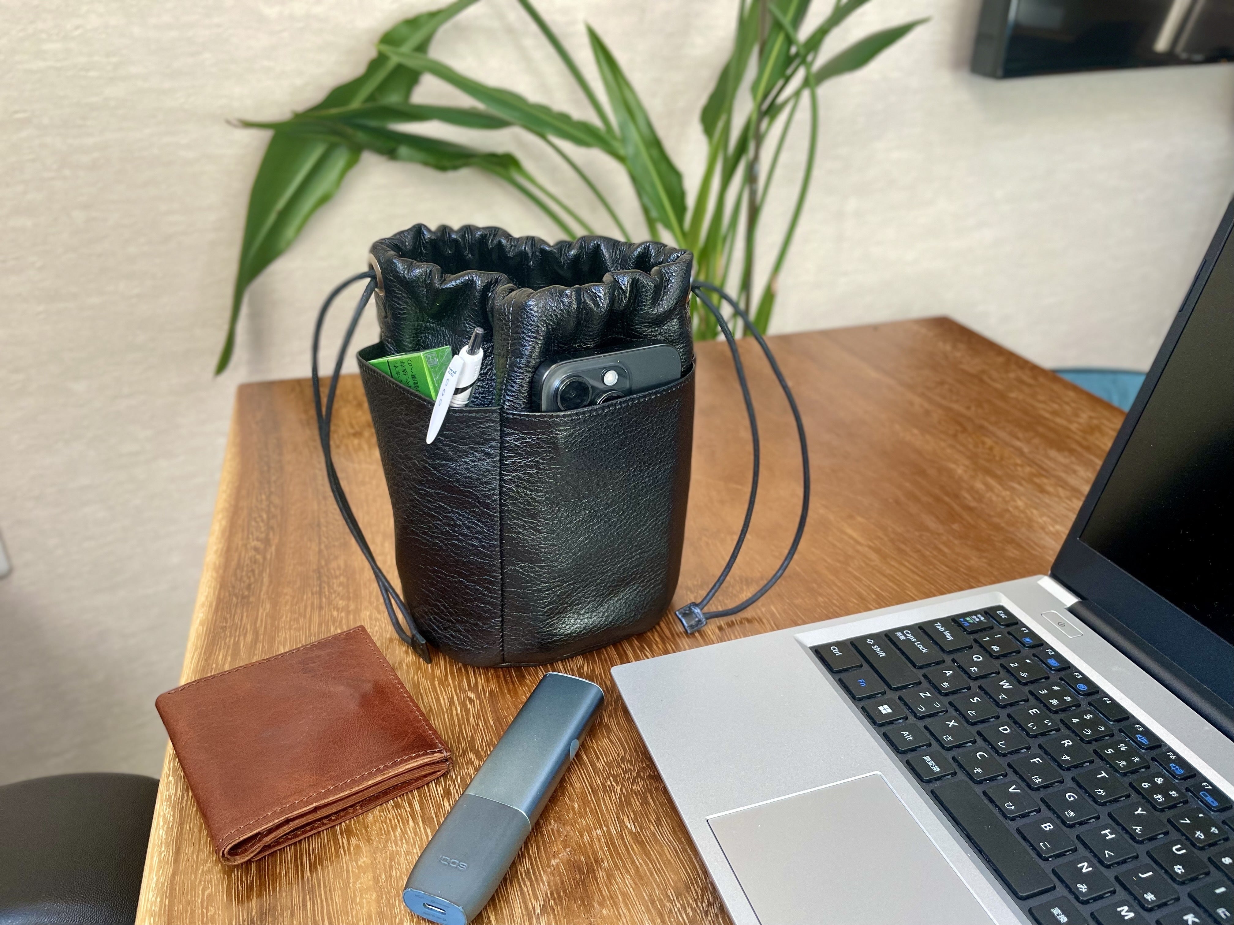 今回の本革巾着ショルダーは、【小さいバッグながらも使いやすいこと】を大切に普段使いはもちろん様々な場面で活躍できるよう制作しました。小さいバッグが欲しいけど、あまり入らないと不安だったりしませんか?