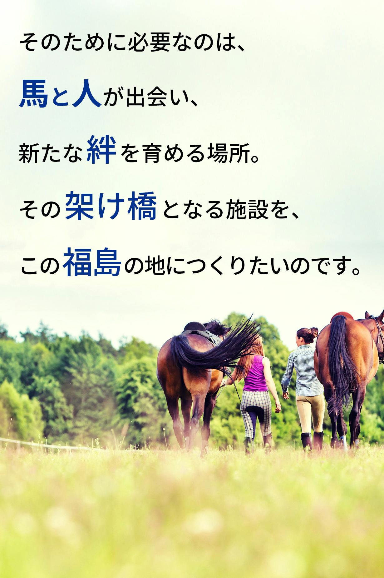 そしてその姿を多くの方々に見ていただける場所をつくり、 人と馬が紡ぎ出す新しい物語の舞台としていきたい。